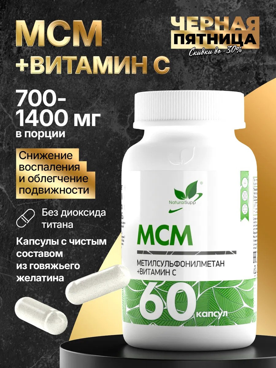 | Состав | Метилсульфонилметан (МСМ), оболочка капсулы (желатин) |