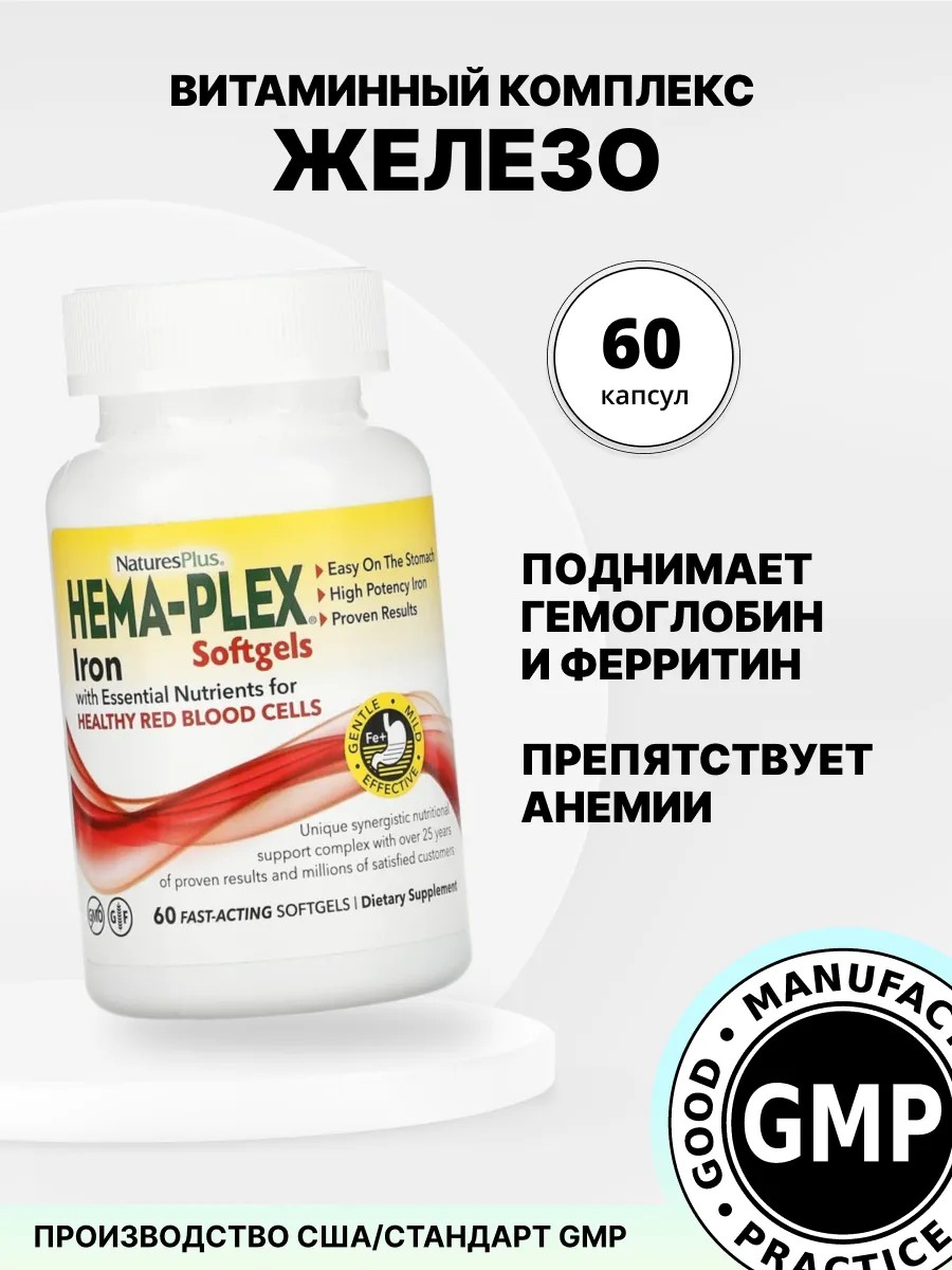 Пополните железо в своем организме с помощью витаминов Hema-Plex! Продукт железа Hema-Plex - это идеальное решение для поддержания здоровья вашей крови железа. Эти капсулы содержат 85 мг элементарного железа, который играет важную роль в образовании красных кровяных клеток и транспортировке кислорода по организму.Специалисты по железу Nature's Plus разработали уникальную микрогелевую систему длительного высвобождения, которая обеспечивает постепенное и равномерное поступление железа в организм на протяжении длительного времени.Железо Hema-Plex подходит как для женщин, так и для мужчин, и может быть использован как дополнение к вашему рациону для поддержания здоровья и энергии. Закажите железо прямо сейчас и обеспечьте своему организму необходимое количество железа для его оптимального функционирования.Вы ищете надежный и эффективный комплекс витаминов и минералов железа для поддержания вашего здоровья? Железо идеально подойдет вам! Созданная с учетом всех потребностей организма, данная формула железа обеспечивает ваш организм всеми необходимыми витаминами и минералами, железо необходимы для поддержания здоровья и улучшения общего состояния. Железо, входящее в состав комплекса, помогает нормализовать уровень глюкозы и гемоглобина в крови, что в свою очередь способствует улучшению общего состояния крови и организма в целом. Покупая железо, вы делаете правильный выбор в пользу вашего здоровья! Железо.Hema-Plex от Nature’s Plus - это эффективный комплекс витаминов и минералов, железо разработанный специально для поддержания здоровья и уровня глюкозы в крови. Железо содержит все необходимые питательные вещества, чтобы ваш организм функционировал на высшем уровне.Благодаря уникальной формуле Железа Hema-Plex вы получите необходимый запас железа, минералов и витаминов, необходимых для поддержания уровня гемоглобина в крови. Железо поможет вам чувствовать себя бодрее и энергичнее на протяжении всего дня.Не упустите возможность укрепить свое здоровье и повысить свою ж