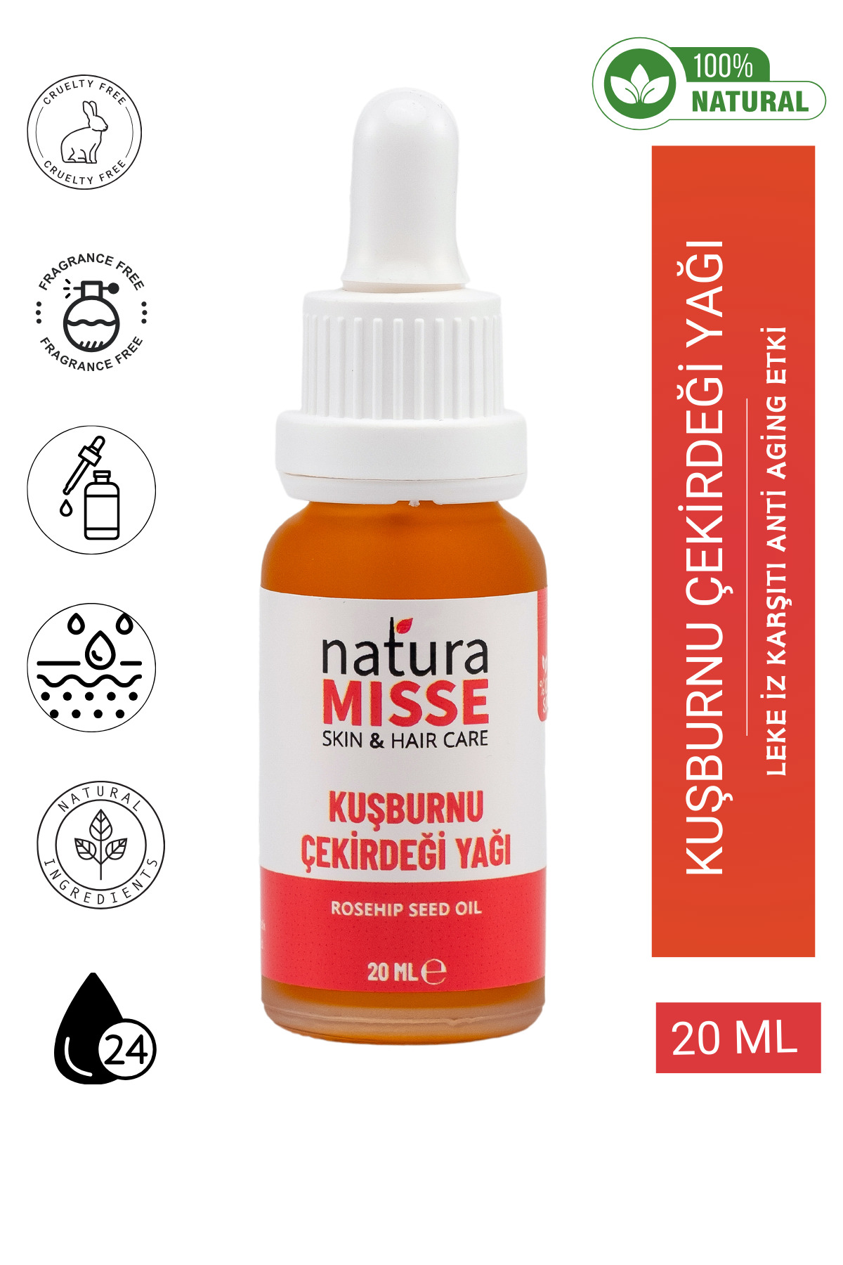 Its formula enriched with pure Rosehip seed oil nourishes and moisturizes your skin. It offers practical use with its 20 ml volume You can carry it with you whenever you want. It effectively fights against skin blemishes and helps the skin look smoother. This oil, obtained by cold pressing method, ensures that natural ingredients reach your skin in their purest form. This product, which you should use by avoiding contact with water, is also suitable for sensitive skin.Rosehip seed oilIt helps you achieve a firm and vibrant appearance by renewing the skin. Rosehip seed oil, which has become the center of attention with its anti-stain structure,It can help prevent the formation of blemishes while reducing blemishes on the skin, giving the skin a smooth appearance..