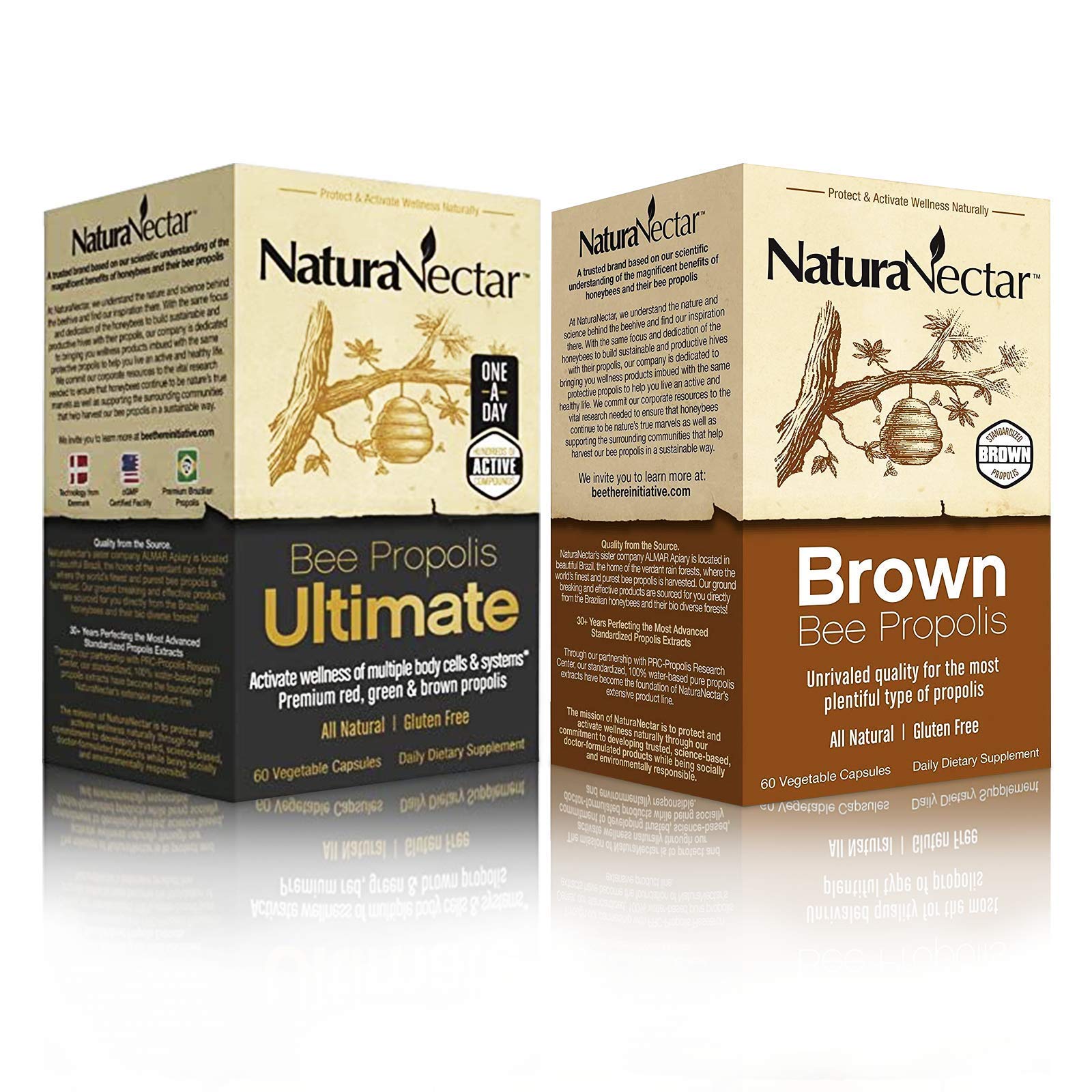 NaturaNectar Natural Bee Propolis Bundle Bee Propolis Ultimate and Brown Bee Propolis - for Immune Cardiovascular and Respiratory Systems Support - 60 Capsules per Bottle