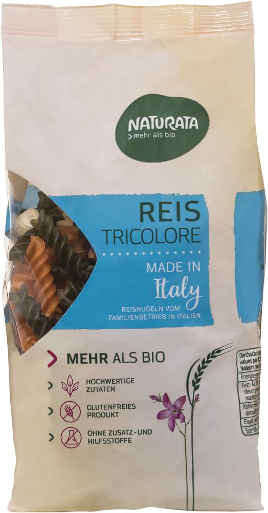 In short: Naturata rice pasta is the gluten-free alternative for pasta lovers. Certified organic in the EU. INGREDIENTS Rice flour, tomato powder, spinach powder COOKING INSTRUCTIONS They are perfect for summer pasta dishes, light pasta salads, or Asian-inspired dishes. SAFETY WARNING Allergy information: Guaranteed exclusion: gluten See more