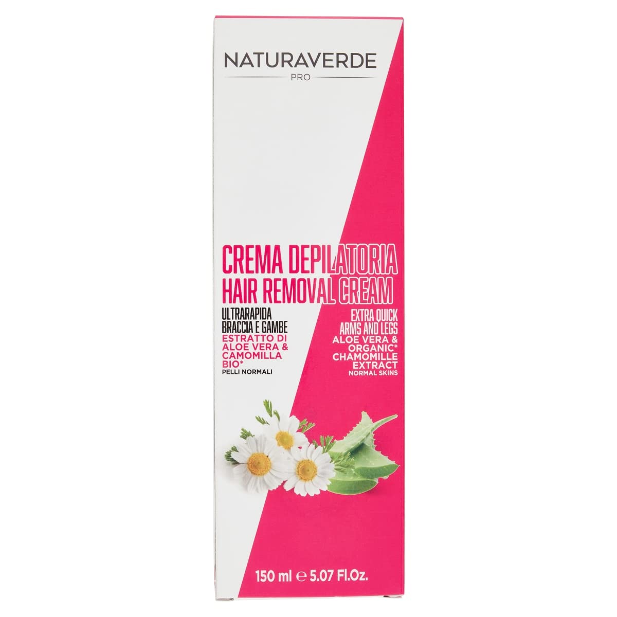 This ultra-fast hair removal cream, thanks to its innovative formula enriched with soothing and calming Aloe Vera and organic Chamomile, effectively and painlessly removes all traces of hair from arms, legs, and the bikini area. For smooth, velvety, and fragrant skin in just 5 minutes. SAFETY WARNING Please read the instructions carefully before use. Always perform a patch test before use. Thoroughly clean the area to be treated. Apply an even layer of cream thick enough to completely cover the hair. Leave the cream on for a maximum of 8 minutes. Remove the cream with the spatula and rinse thoroughly with water. If irritation or an allergic reaction occurs, discontinue use and consult a doctor.Naturaverde Pro: For your skin and beauty, choose the Naturaverde hair removal line: waxes, waxing strips, and complete accessories to guarantee easy, safe hair removal and perfect results, at home or at the salon. Quality and safety Made in Italy for your skin. Instructions for use: 3. Leave on for a maximum of 5 to 8 minutes 4. On a small area, check with the appropriate spatula if the hairs come off easily, then remove the cream, still using the spatula, and rinse thoroughly with water. Instructions for use: 1. Thoroughly clean the area to be waxed 2. Using the spatula, apply an even layer of cream thick enough to completely cover the hairs. Professional results at home: Enriched with organic aloe vera and chamomile, with soothing and calming action. Dermatologically tested. Hair removal cream: Thanks to its innovative, ultra-fast formula, this hair removal cream effectively and painlessly removes all traces of hair from arms, legs, and the bikini area. For smooth, velvety, and fragrant skin in just 5 minutes.Naturaverde PRO - Crème épilatoire avec extrait d'Aloe Vera et Camomille BIO, crème pour bras et jambes, action ultra-rapide, crème dépilatoire pour homme pour corps de cheveux, pot de 150 mlDESCRIPTION DU PRODUIT DESCRIPTION DU PRODUIT La crème épilatoire ultra-rapide, grâce à la formule innovante ultra rapide, enrichie en Aloe Vera et Camomille Bio, à action apaisante et apaisante, élimine efficacement toute trace de poils de bras, jambes et zone bikini, de manière délicate et indolore. Pour une peau lisse, veloutée et parfumée en 5 minutes. AVERTISSEMENT DE SÉCURITÉ Veuillez lire attentivement les instructions avant utilisation. Effectuez toujours un test patch avant utilisation. Bien nettoyer la partie à épiler. Appliquer une couche uniforme de crème suffisamment épaisse pour couvrir complètement les poils. Laisser agir la crème pendant 8 minutes maximum. Retirez la crème à l'aide de la spatule et rincez abondamment à l'eau. En cas d'irritation ou de réaction allergique, arrêtez d'utiliser le produit et consultez un médecin.Naturaverde Pro : pour votre peau et votre beauté, choisissez la ligne pour l'épilation Naturaverde : cires, bandes épilatoires et accessoires complets pour garantir une épilation facile, sûre et des résultats parfaits, à la maison comme par l'esthéticienne. Qualité et sécurité Made in Italy sur votre peau. Mode d'emploi : 3. Laisser agir de 5 à 8 minutes au maximum 4. Sur une petite zone, vérifiez avec la spatule appropriée si les poils s'enlèvent facilement, puis retirez la crème toujours à l'aide de la spatule et rincez abondamment à l'eau. Mode d'emploi : 1. Bien nettoyer la partie à épiler 2. à l'aide de la spatule appliquer une couche uniforme de crème suffisamment épaisse pour couvrir complètement les poils . Résultats professionnels à la maison : enrichie en aloe vera et camomille bio, à action apaisante et apaisante. Testé sous contrôle dermatologique. Crème dépilatoire : la crème épilatoire Ultrarapide, grâce à la formule innovante ultra rapide, élimine efficacement toute trace de poils de bras, jambes et zone bikini, de manière délicate et indolore. Pour une peau lisse, veloutée et parfumée en 5 minutes.
