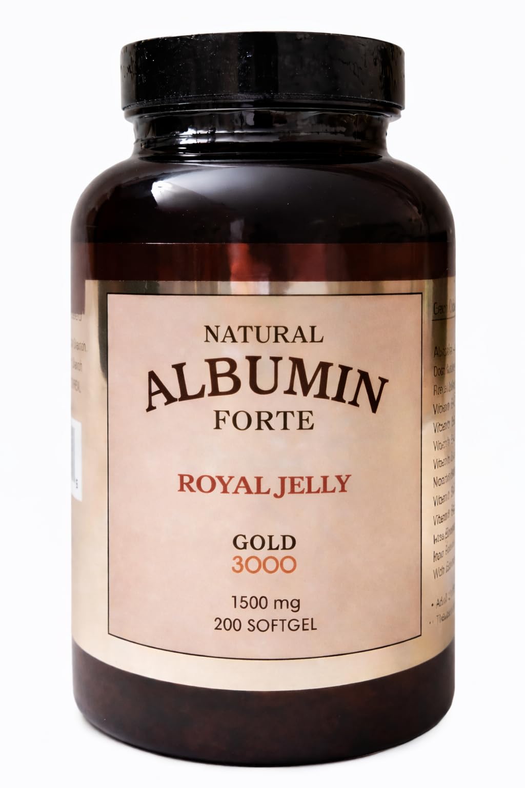 Natural Albumin Forte Royal Jelly Gold 3000 – Nature's Formula for Strength, Energy, and Balance Our Natural Albumin Forte Royal Jelly is enriched with vitamins to support healthy tissue development and immune function. Formulated with royal jelly, it may help lower cholesterol and support healthy blood pressure levels. This unique blend works to defend the body from infections, promote wound recovery, and maintain overall well-being. Albumin is a major protein found in human blood plasma. Produced by the liver, it plays a critical role in maintaining fluid balance, transporting nutrients, and supporting various bodily functions. It helps carry hormones, vitamins, and enzymes throughout the body while supporting tissue repair, immune health, and cardiovascular function. Trusted by those seeking natural support for strength, recovery, and cardiovascular health, our Natural Albumin Forte Royal Jelly is great for those who are looking to: Regulate colloidal osmotic pressure for fluid balance Supply essential plasma protein for overall health Support the transport of fatty acids, hormones, and enzymes Help restore and maintain healthy cardiac output Promote immune strength, tissue repair, and more! These statements have not been evaluated by the Food and Drug Administration. This product is not intended to diagnose, treat, cure, or prevent any disease. Storage Instructions: To maintain product quality, store in a cool, dry place away from direct sunlight. Softgels may begin to soften at temperatures above 95 F, so we recommend keeping them below 86 F whenever possible. Do not expose to heat or humidity for extended periods.Premium royal jelly albumin blend – A trusted supplement designed to restore balance, promote overall wellness, and support the body's natural healing processes. Boosts recovery and tissue repair – Fortified with vitamins to encourage healthy tissue development and aid in wound healing. Promotes heart and immune health – Enriched with royal jelly, this formula may help lower cholesterol, support healthy blood pressure, and strengthen immune defenses. Supports fluid balance and nutrient transport – Albumin is a vital blood protein that helps regulate osmotic pressure and carry essential nutrients, hormones, and enzymes throughout the body.