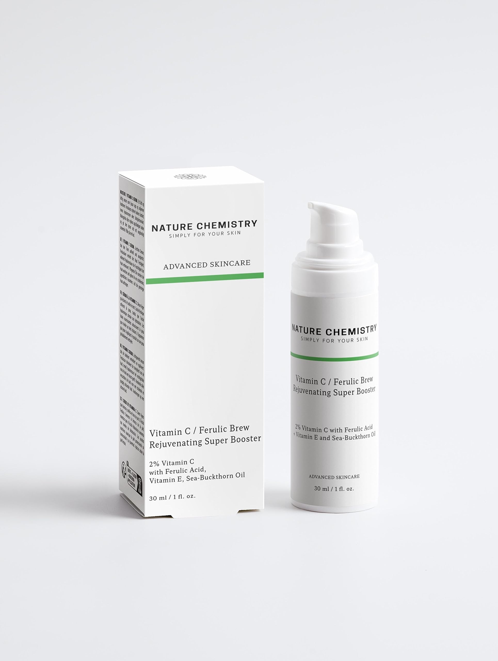 Serum with a light formula that lightens and evens the complexion. Ferulic acid gives firmness to the skin, while hyaluronic acid increases moisture content and gives the skin elasticity. Natural oils moisturize the skin, give it shine and a youthful appearance. With the sweet and juicy aroma of mandarin, with delicate floral and citrus notes. Aqua Water, Glycerin , Simmondsia Chinensis (Jojoba) Seed Oil , Pentylene Glycol, Butylene Glycol, Ascorbyl Glucoside, Cetearyl Alcohol, Sodium PCA, Glyceryl Stearate Citrate, Caprylic Capric Triglyceride, Ferulic Acid, Hippophae Rhamnoides (Sea Buckck) Thorn) Fruit Oil , Tocopherol, Coco-Caprylate Caprate, Dicaprylyl Carbonate, Isoamyl Laurate, Triheptanoin, Potassium Hydroxide, Parfum Fragrance, Prunus Amygdalus (Sweet Almond) Dulcis Oil , Cellulose, Sodium Citrate, seed oil , hydrolyzed hyaluronic acid, sodium hyaluronate, sodium phytate, citric acid, limonene , citral , linalool , citronellol Ingredients from organic cultivation Made from organic ingredients Bee From natural essential oils Contains no parabens. Contains no dyes. Use: Apply a hazelnut (1 to 2 pumps) in the morning and evening to the clean skin of the face, neck and décolleté. Massage gently until completely absorbed. It can be applied daily. Avoid eye contact. Suitable for all skin types. Dermatologically tested. It has not been tested on animals. Routine step: It is applied to clean skin, immediately after cleansing the skin or after applying water or moisturizing essence, before applying the moisturizer. SAFETY WARNING Avoid contact with the eyesimproves skin elasticity. imrpoves skin brightening. improves skin hydration. anti-pigmentatie. antioxidant.Vitamine C Ferulic Brew Rejuvenating Super Booster Serum met lichte formule dat de teint lichter en egaliseert. Ferulinezuur geeft stevigheid aan de huid, terwijl hyaluronzuur het vochtgehalte verhoogt en de huid elasticiteit geeft. Natuurlijke oliën hydrateren de huid, geven het glans en een jeugdige uitstraling. Met het zoete en sappige aroma van mandarijn, met delicate bloemige en citrusnoten. Aqua Water, Glycerine , Simmondsia Chinensis (Jojoba) zaadolie , Pentyleenglycol, Butyleenglycol, Ascorbylglucoside, Cetearyl Alcohol, Natrium PCA, Glyceryl Stearaat Citraat, Caprylic Capric Triglyceride, Ferulic Acid, Hippophae Rhamnoides (Sea Buckck) Thorn) Fruit Oil , Tocoferol, Coco-Caprylaat Capraat, Dicaprylyl Carbonaat, Isoamyl Laurate, Triheptanoin, Kalium Hydroxide, Parfum geur, Prunus Amygdalus (Sweet Almond) Dulcis Oil , Cellulose, Natriumcitraat, Xanthaangom, Persea Gratissima (Athorn) vocado) O. il , Rosa Canina (Rosehip) Fruit Oil , Ascorbyl Palmitaat, Ricinus Communis (Castor) zaadolie , gehydrolyseerd hyaluronzuur, natriumhyaluronaat, natriumfytaat, citroenzuur, limoneen , citral , linalool , citronellol Ingrediënten uit biologische teelt Gemaakt van ingrediënten biologisch Bij Van natuurlijke etherische oliën Bevat geen parabenen. Bevat geen kleurstoffen. Gebruik: Breng 's ochtends en' s avonds een hazelnoot (1 tot 2 pompjes) aan op de schone huid van gezicht, hals en decolleté. Masseer zachtjes tot het volledig is opHet kan dagelijks worden aangebracht. Vermijd oogcontact. Geschikt voor alle huidtypes. Dermatologisch getest. Het is niet getest op dieren. Routinestap: Het wordt aangebracht op een schone huid, direct na het reinigen van de huid of na het aanbrengen van water of vochtinbrengende essentie, voordat u de vochtinbrengende crème aanbrengt. VEILIGHEIDSWAARSCHUWING Vermijd contact met de ogenimproves skin elasticity. imrpoves skin brightening. improves skin hydration. anti-pigmentatie. antioxidant.