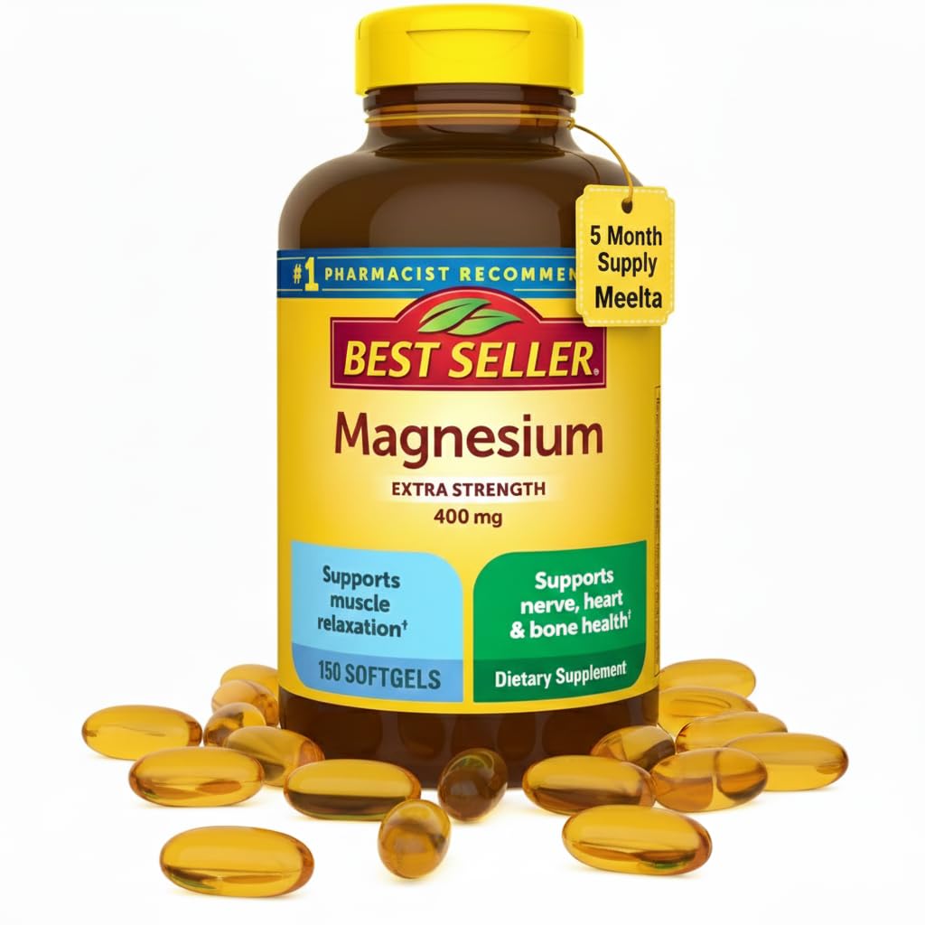 5-MONTH SUPPLY – 150 easy-to-swallow softgels for once-daily use, providing a full 5 months of continuous support. PURE GLUTEN FREE – No preservatives, no synthetic dyes, gluten free, and no artificial flavors. Made with premium ingredients you can trust. BONE MUSCLE SUPPORT – Plays an important role in bone density and healthy muscle performance for an active lifestyle. ? ENERGY NERVE FUNCTION – Supports proper nerve signaling and energy production to help your body function at its best every day. EXTRA STRENGTH MAGNESIUM – Each serving provides 400mg of magnesium, a vital mineral that supports overall wellness, including muscle relaxation and bone strength.