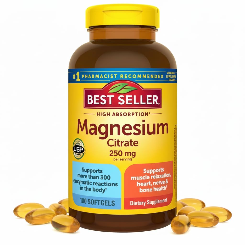 Quality Formulation — Made with carefully selected ingredients no artificial flavors or preservatives. Bundle Value — Includes the Essential Vitamins Dietary Supplements Guide. 180 Easy-to-Swallow Softgels — Convenient multi-month supply. Bone Health Support — Contributes to healthy bones. Muscle Nerve Support — Helps maintain normal muscle and nerve function. Magnesium Citrate 250 mg — Each serving provides 250 mg of magnesium citrate.