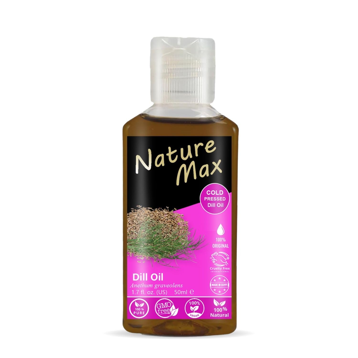 Nature Max Dill Oil Pure & Natural Cold Pressed Concentrated Crude Perfect Fresh For Food Cooking & Body & Hair Non Gmo No Additives Kosher Halal (1 Pack 1.69 oz / 50 ml)