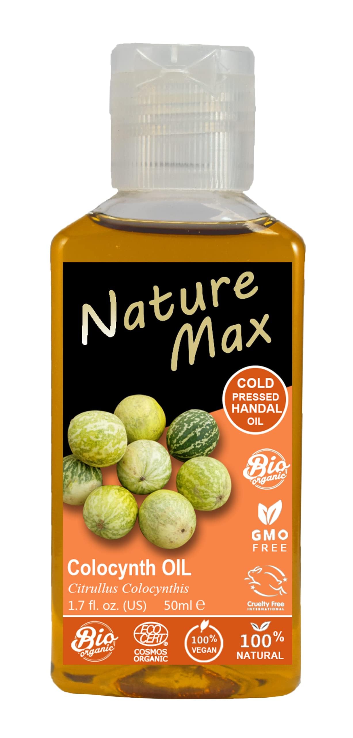 Nature Max Handal Citrullus Oil Natural Undiluted Pure For Hair Skin Care Food Cold Pressed Premium ( 1Pack 1.70 oz 50 ml ) ? It Has Many Benefits For Hair And Gives It Shine And Silky Shape Nature Max Handal Oil Is Extremely Gentle On The Skin , Skincare Routine . Our Oil Is Cold Pressed From The Handal . Our Oil Is Undiluted So That It Blends Seamlessly With Essential Oils And Other Beauty Mix Ins . Food Grade And 100 Pure .