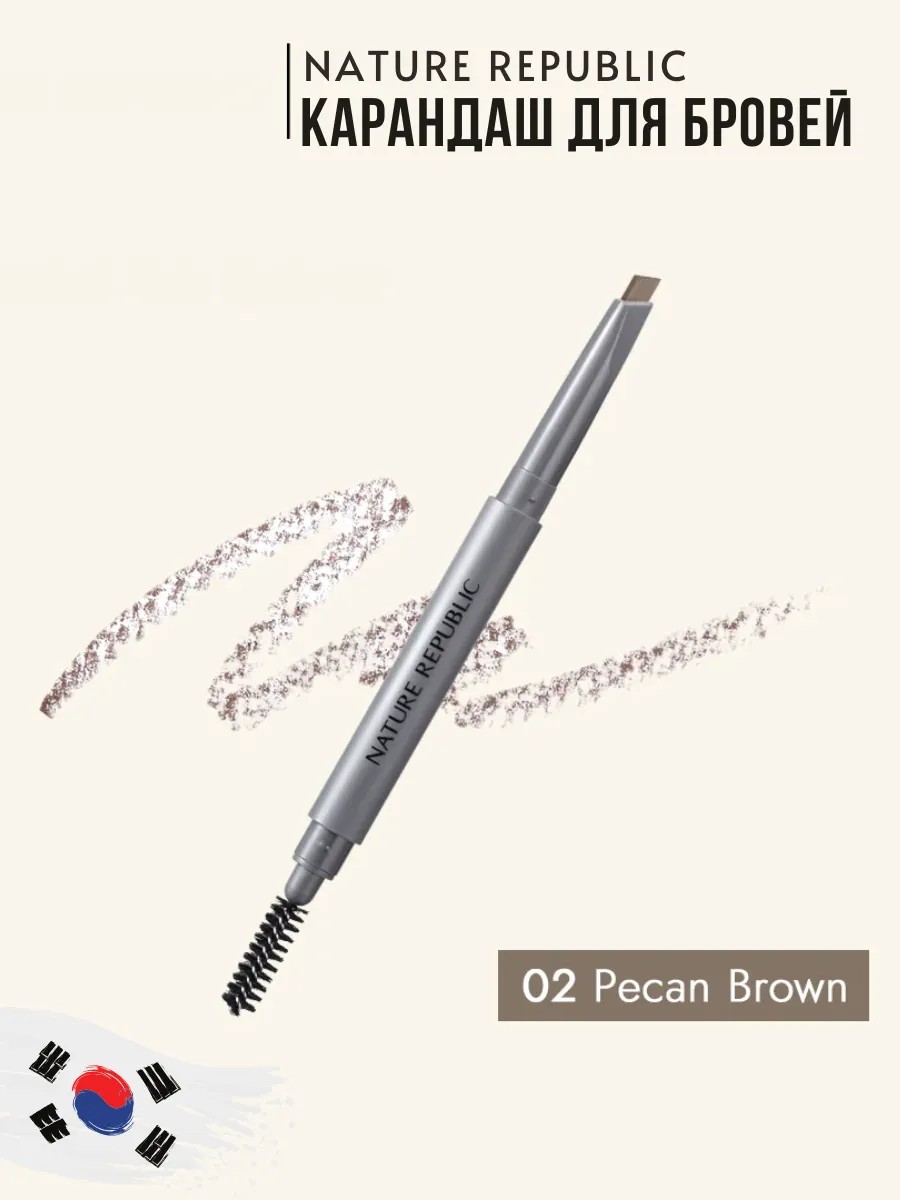 Nature Republic Карандаш для бровей 02 Pecan Brown, 0.3 гр