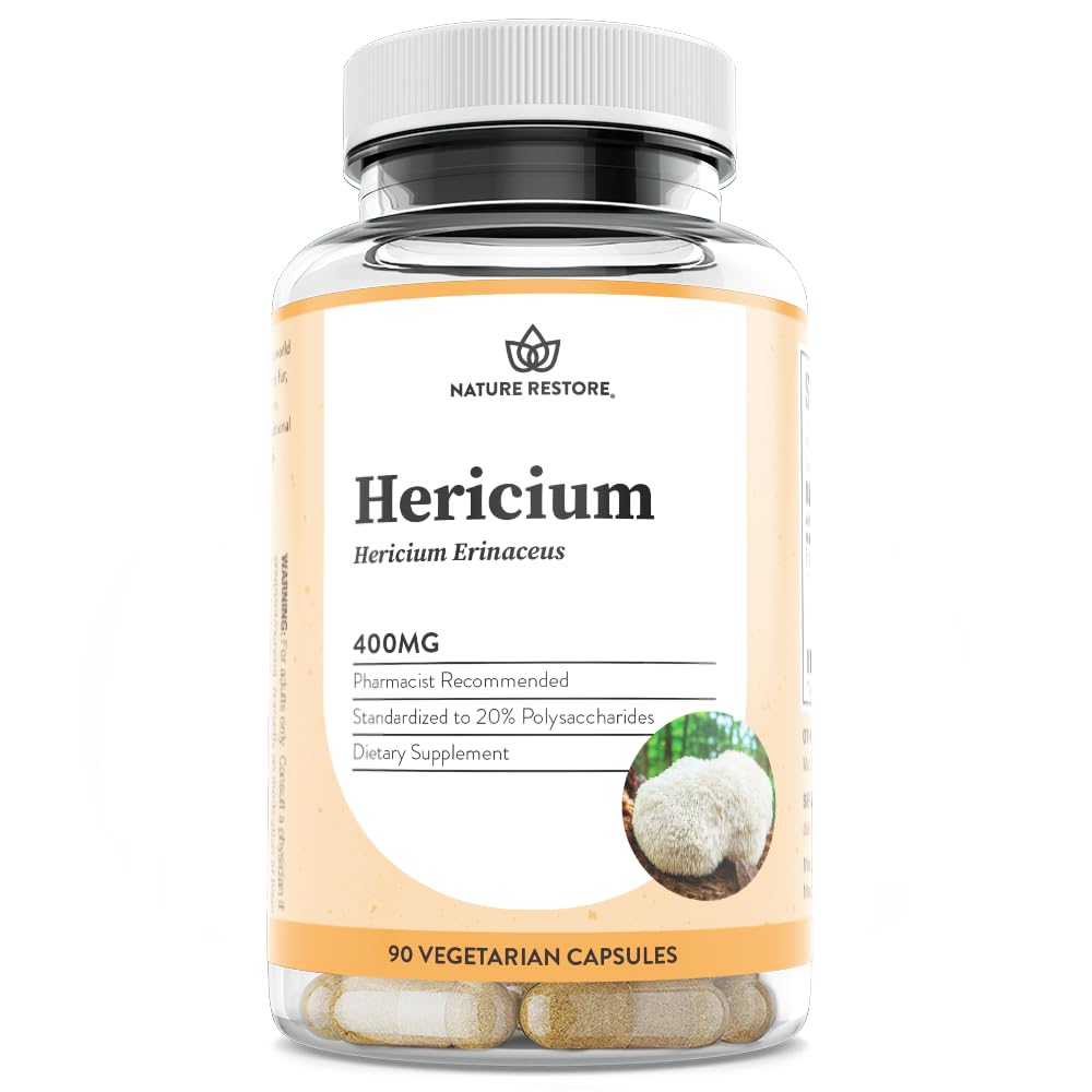 Nature Restore Hericium Erinaceus Extract Mushroom Supplement 90 Capsules 20% polysaccharides Lion's Mane
