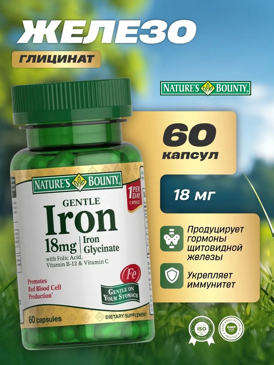 Nature's Bounty Легкодоступное железо 18мг капсулы 60 шт