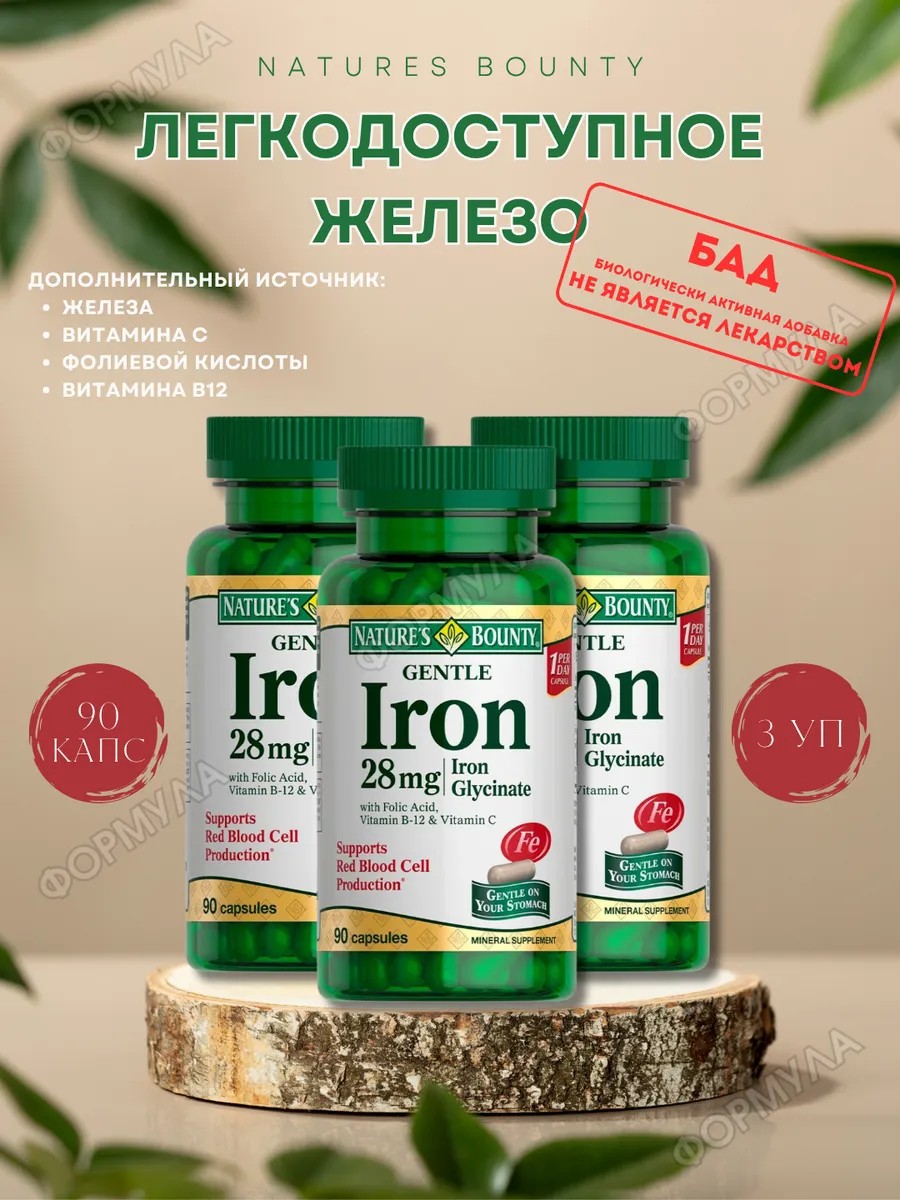 | Комплектация | легкодоступное железо 28мг n90 капс по 546мг/natures bounty/*3шт |