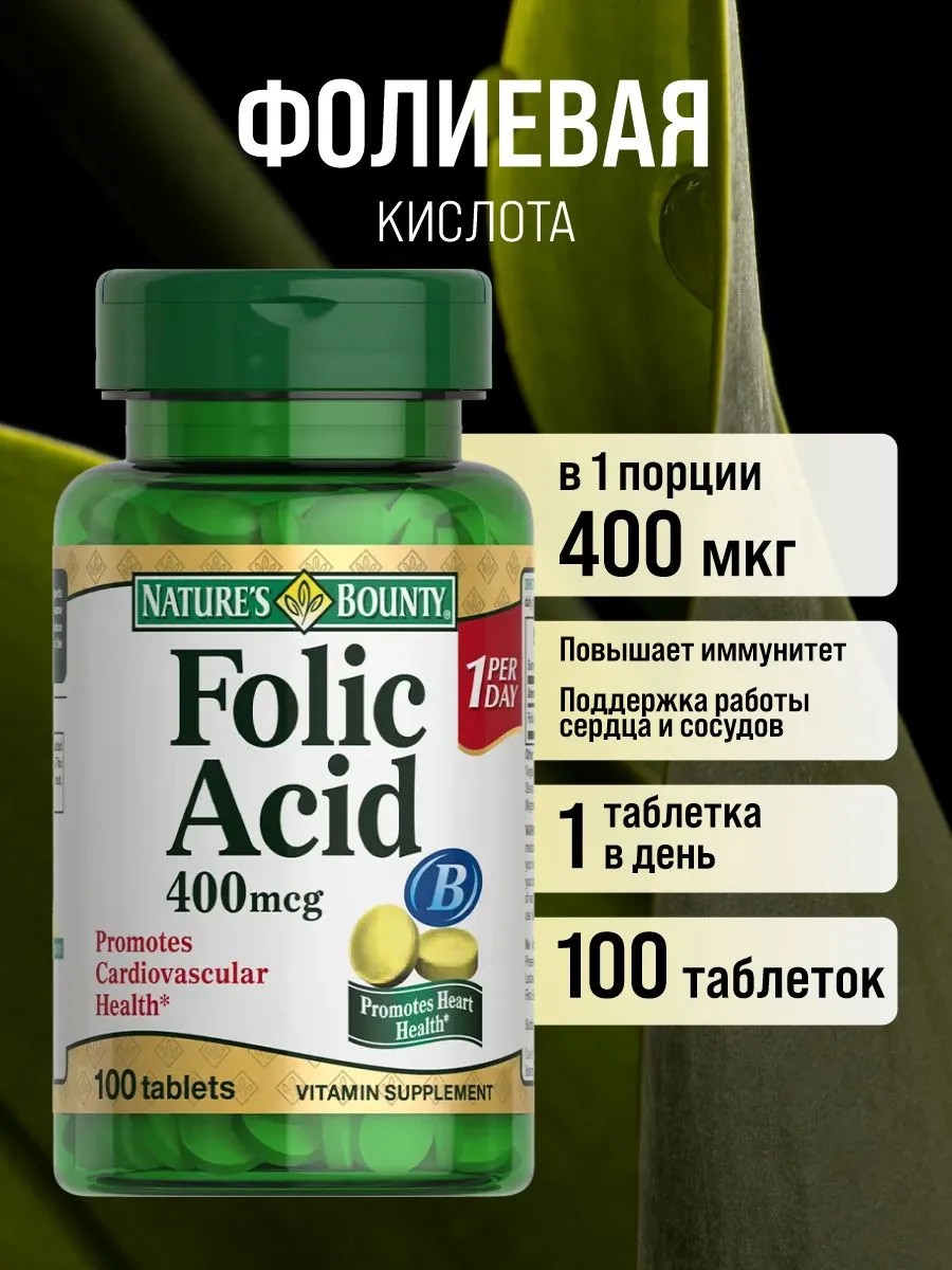 Фолиевая кислота от Nature's Bounty — это ваш надежный помощник в поддержании здоровья, который станет важной частью вашего ежедневного рациона.
