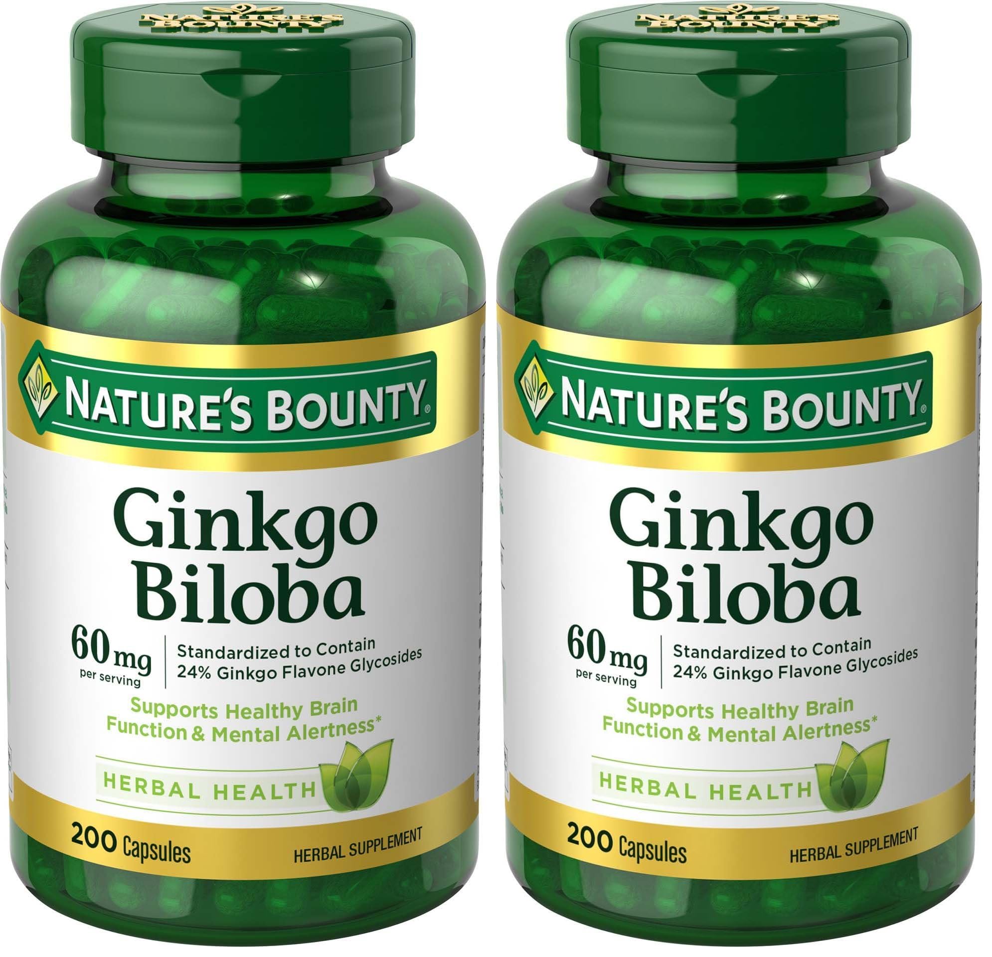 Nature's Bounty Ginkgo Biloba Supports Healthy Brain Function Herbal Supplement 60 Mg 200 Capsules (Pack of 2)