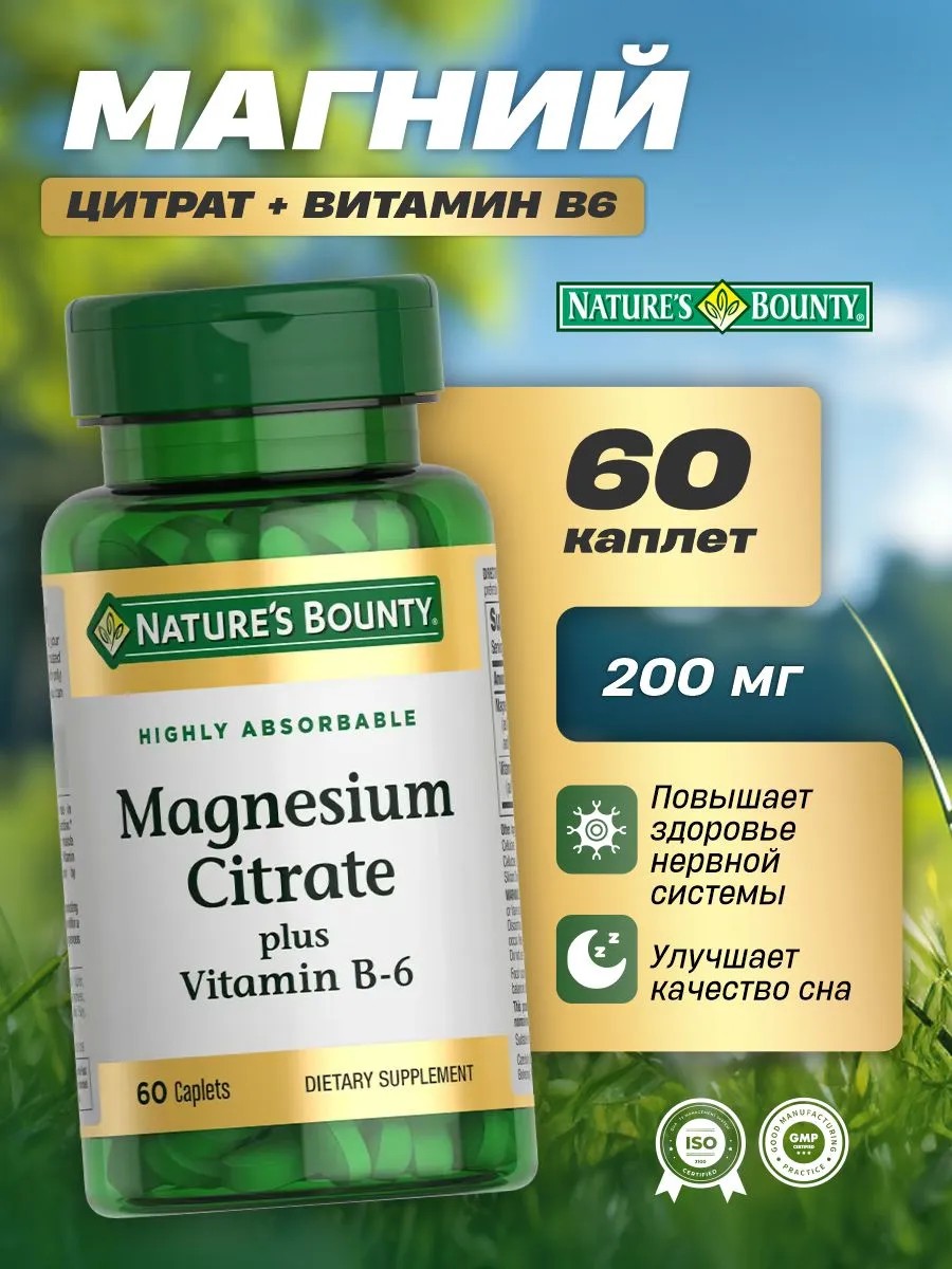 Бренд Nature's Bounty является крупнейшим витаминно-минеральным брендом в мире.Цитрат магния с витамином В-6: