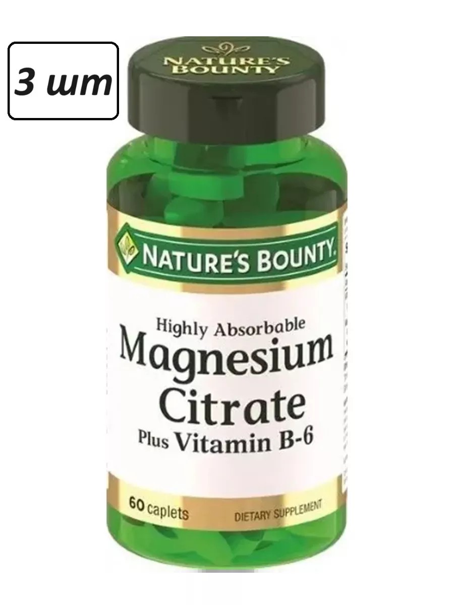 | Full name of product | Nature's Bounty magnesium citrate with vitamin B6 60 pcs. tablets weighing 1515 mg |