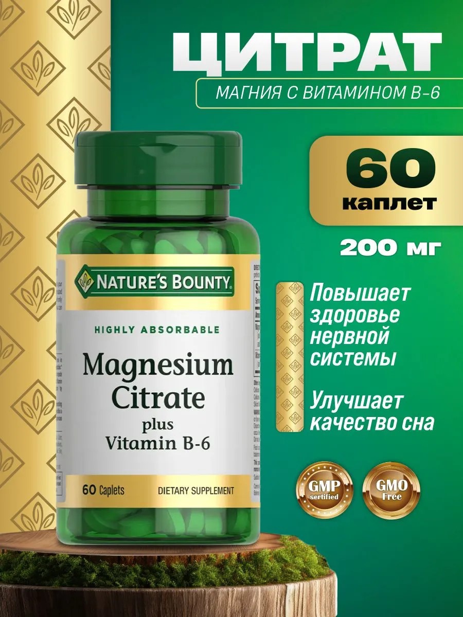 Nature's Bounty Цитрат магния с витамином в6, 60 капсул