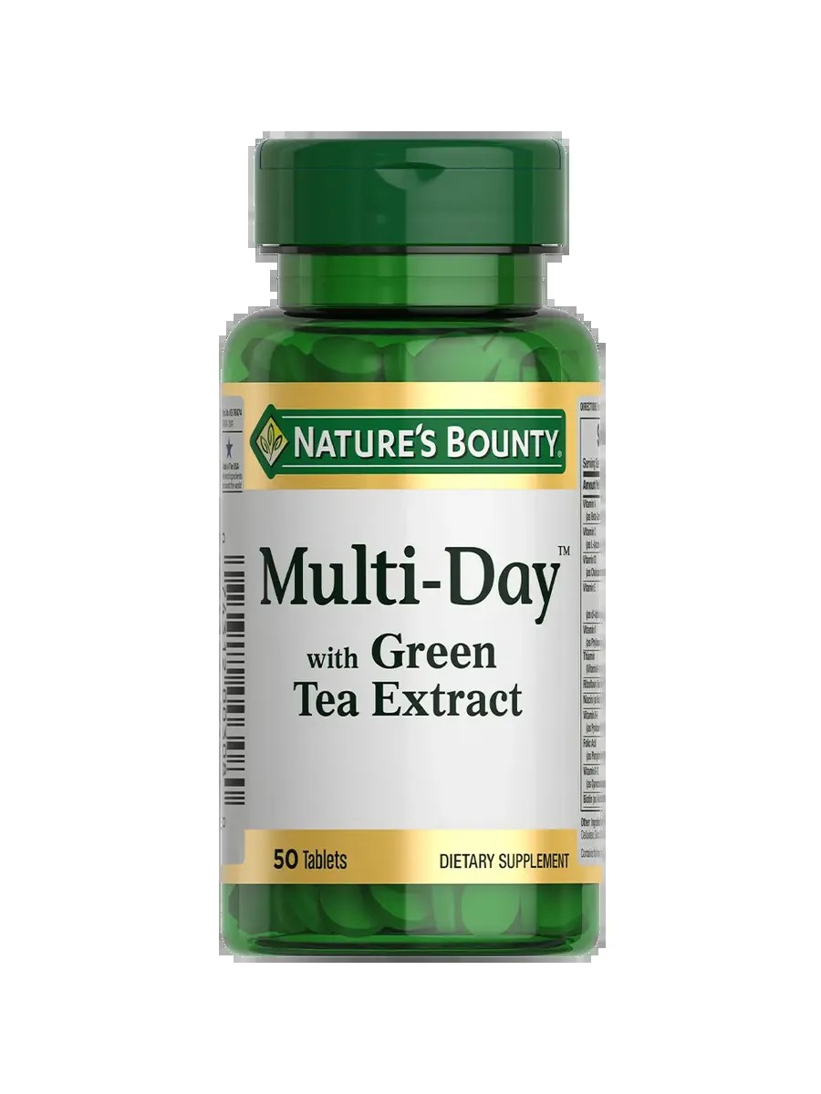 The vitamin complex "Multiday with Green Tea Extract" provides daily multivitamin support for the body.