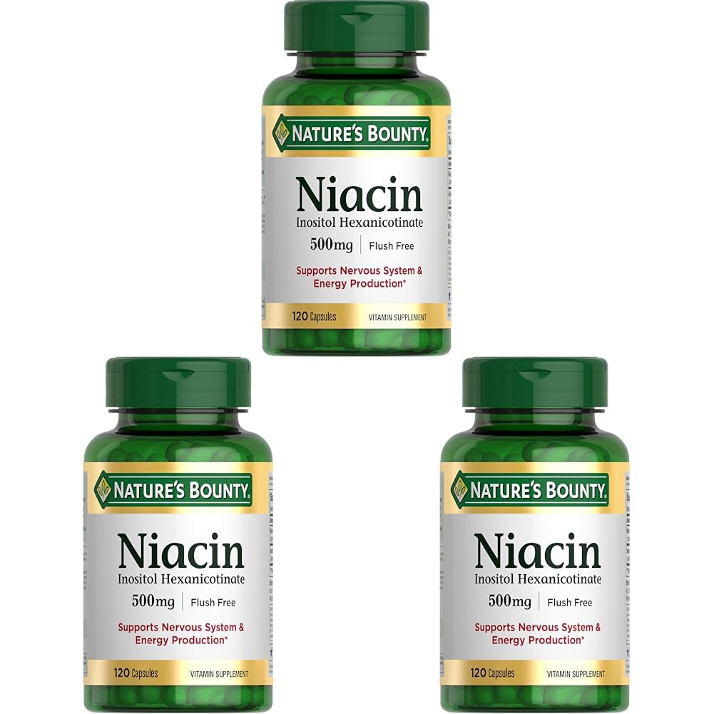 Nature's Bounty Niacin 500mg Flush Free Cellular Energy Support Supports Nervous System Health 120 Capsules (Pack of 3)
