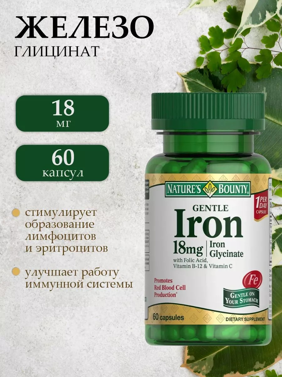 Nature's Bounty Нэйчес Баунти легкодоступное железо 18мг капсулы 60 шт.