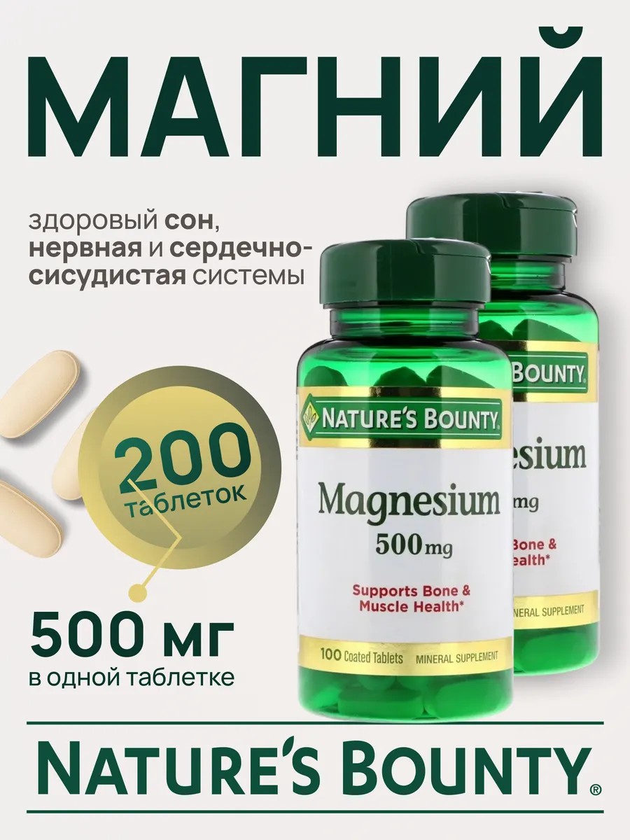 Nature's Bounty Нэйчес Баунти Магний 500мг, magnezium 200 таблеток