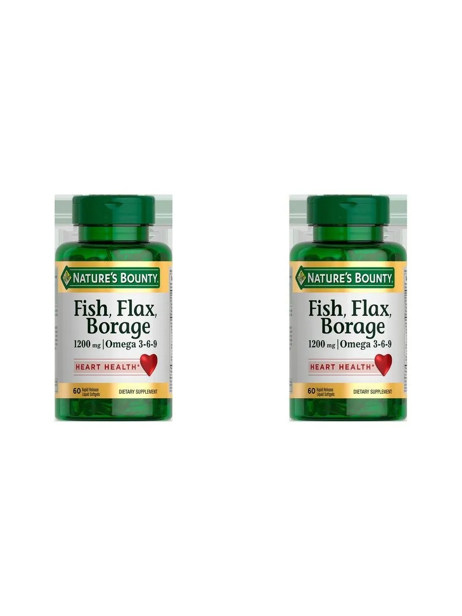 omega 3-6-9 n60 caps 1786 mg / natures bounty /. an additional source of polyunsaturated fatty acids, including omega-3, containing vitamin E. as a biologically active food supplement. a mixture of flaxseed oil, fish oil and borage seed oil, gelatin, glycerin, a mixture of natural tocopherols. for sale to the population as a biologically active food supplement (hereinafter according to the appendix). biologically active substances, mg / 3 caps., not less than: omega-3 PUFA (eicosapentaenoic, docosahexaenoic, alpha-linolenic acids) - 1360, vitamin E - 1.2, omega-6 PUFA - 328, including linoleic acid - 315, omega-9 MUFA - 268 -