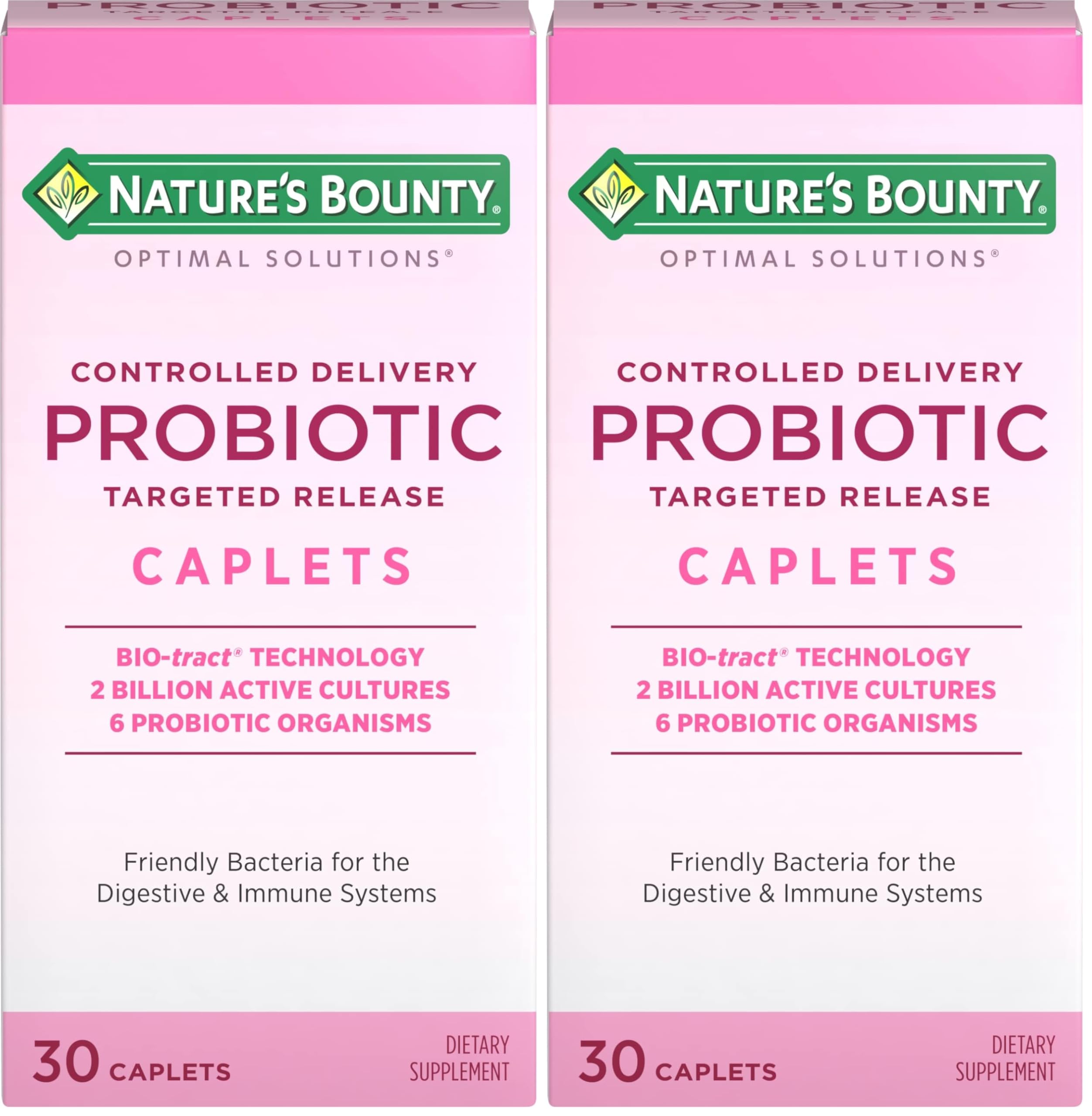 Nature's Bounty Probiotic Controlled Delivery Dietary Supplement Supports Digestive Intestinal and Immune Health 30 Caplets 30 Total Servings (Pack of 2) 30 Count (Pack of 2)