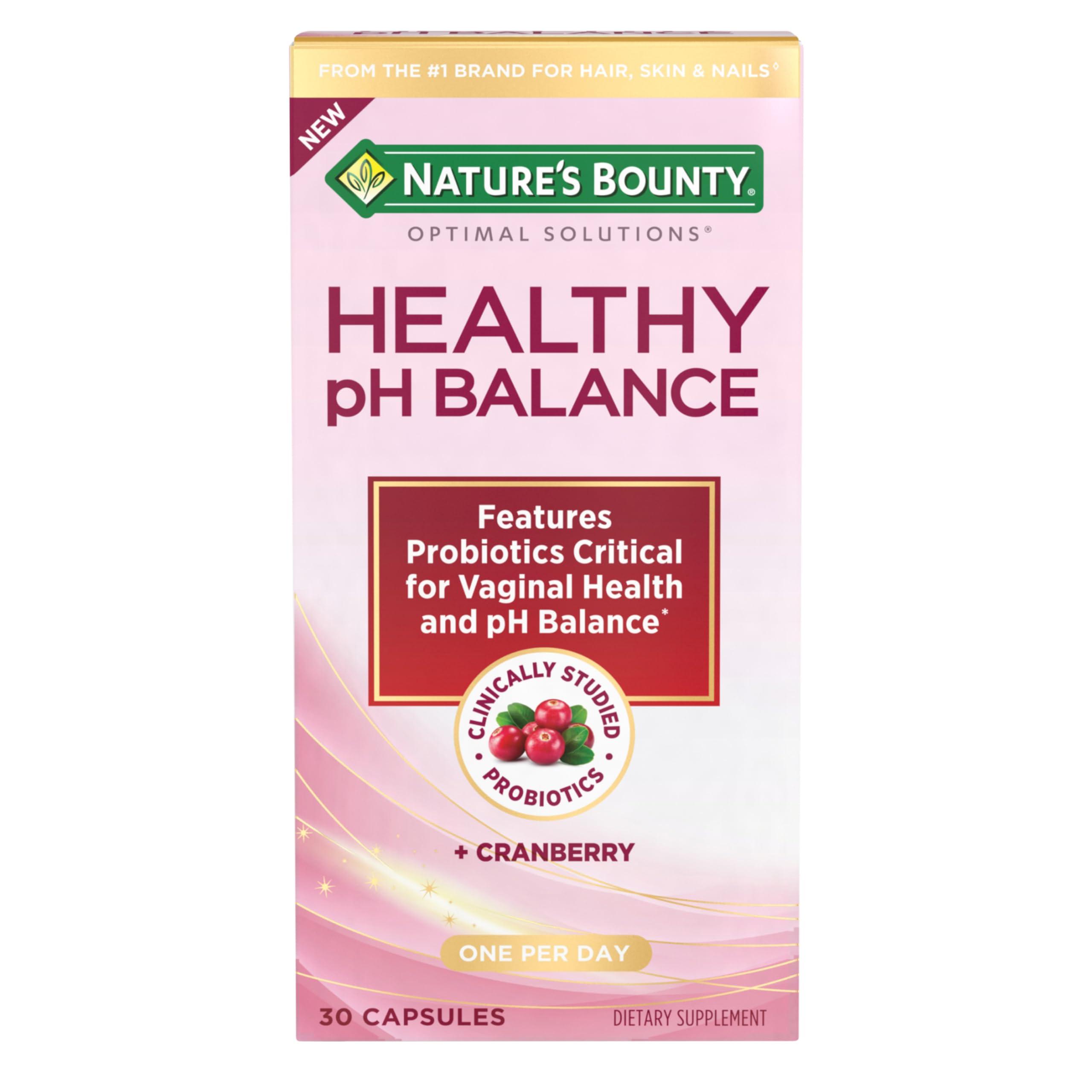 Support vaginal health with Nature’s Bounty Optimal Solutions Healthy pH Balance vaginal probiotics! (1) Our cutting-edge formula combines the antioxidant properties of cranberry powder with women-specific probiotic strains, including Lacticaseibacillus rhamnosus GR-1 and Limosilactobacillus reuteri RC-14. These clinically studied strains work to support a healthy balance of good bacteria and yeast, ensuring optimal vaginal health with just one easy capsule per day.(1) With 2 billion live probiotic cultures for vaginal health, our supplement is designed to support your vaginal flora and overall well-being.(1) Each convenient daily dose delivers high-quality, non-GMO ingredients that align with your lifestyle—whether you're looking for pH balance pills or a trusted probiotic for women. (1) With over 50 years of excellence in crafting high quality supplements, Nature’s Bounty offers a solution that blends science and trust, making it a perfect addition to your wellness routine. Experience the benefits of our vaginal health vitamins and let Nature’s Bounty help you maintain the balance you deserve.