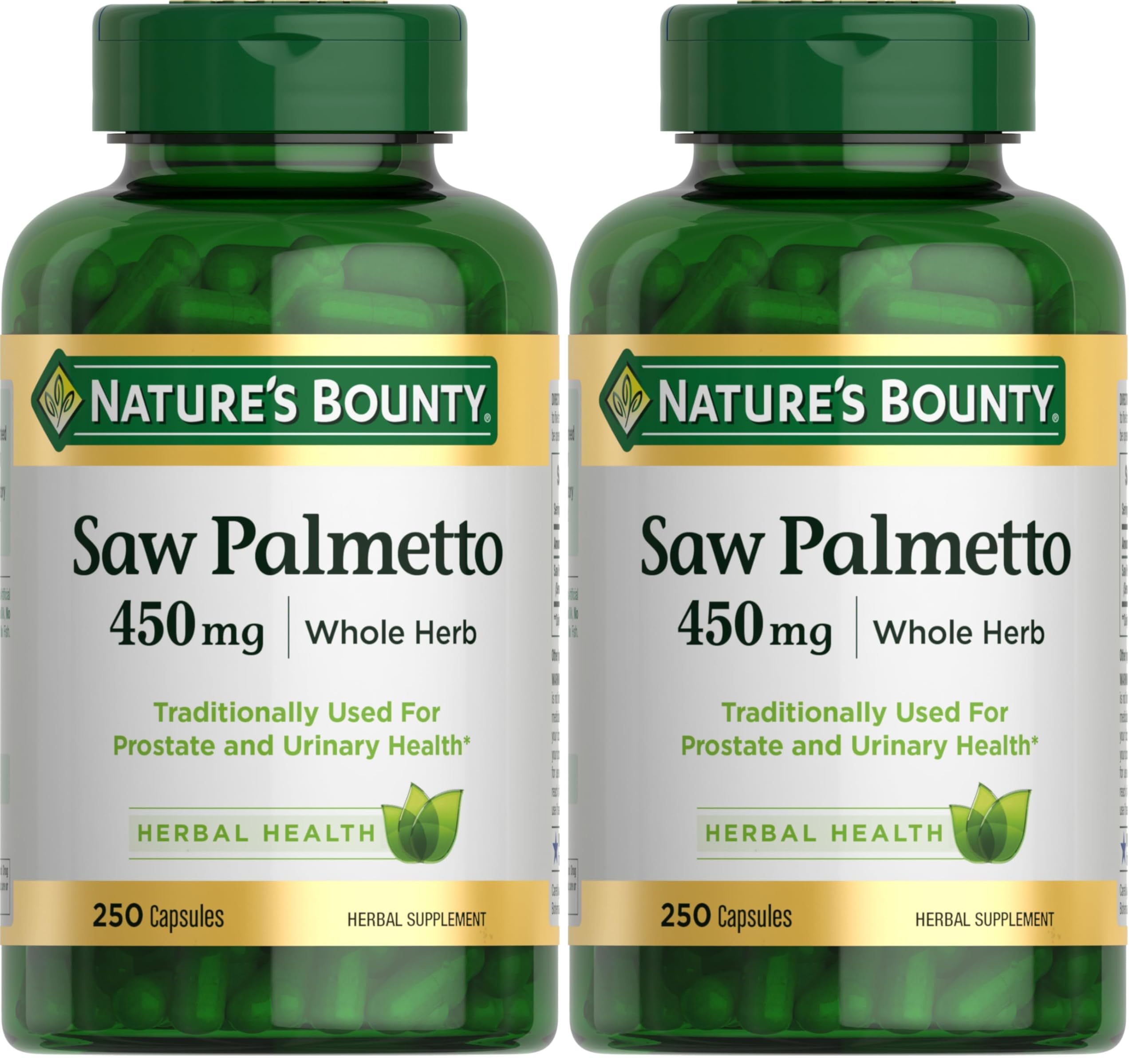 Nature's Bounty Saw Palmetto Support for Prostate and Urinary Health Herbal Health Supplement 450mg 250 Capsules (Pack of 2)