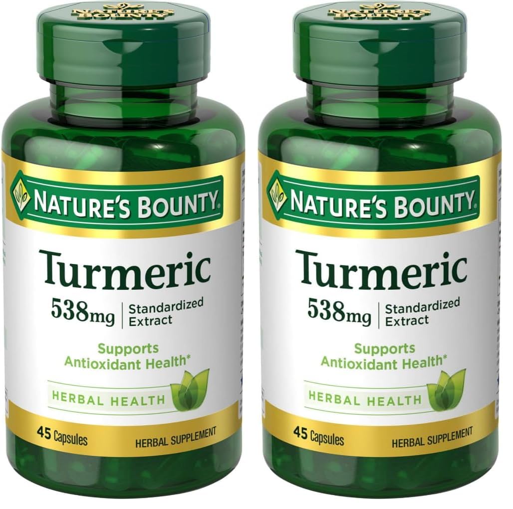 Nature's Bounty Turmeric Pills and Herbal Health Supplement Supports Antioxidant Health 538mg 45 Capsules (Pack of 2)