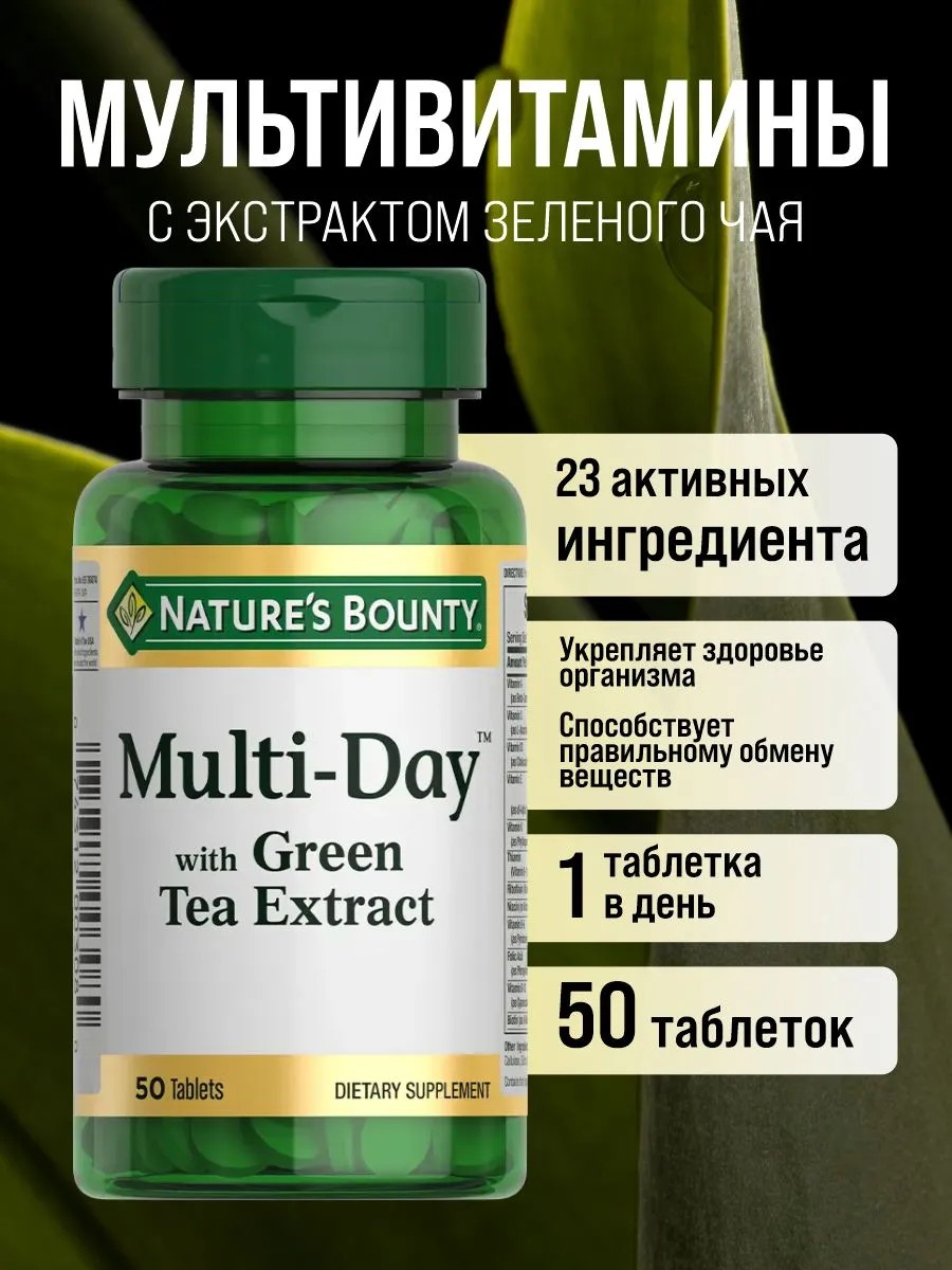 Nature's Bounty Витамины Мульти-Дэй с экстрактом зеленого чая 50 таб