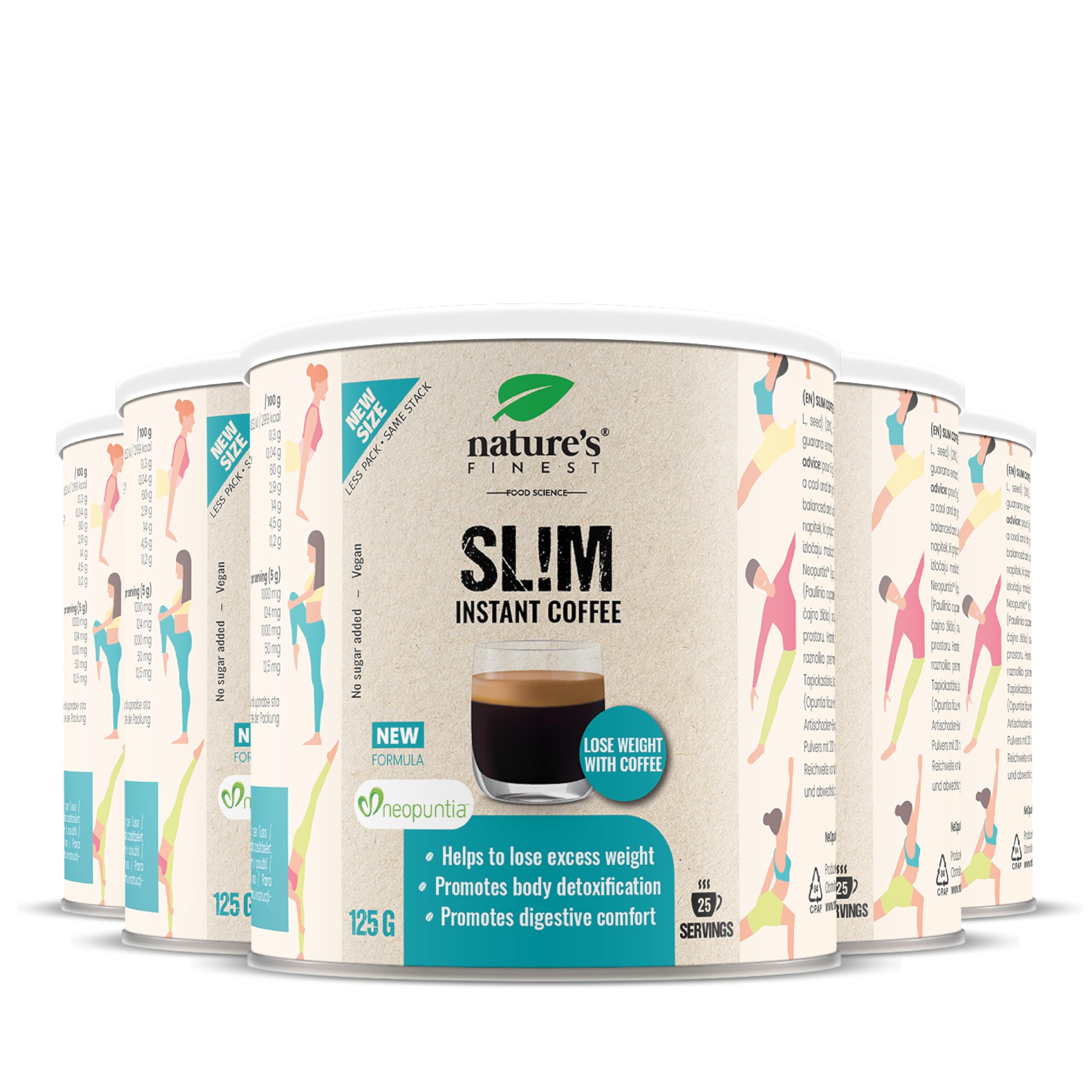 Looking for a natural way to support your digestion and overall well-being? Discover Nature's Finest by Nutrisslim Sl!m Coffee, a unique Arabica coffee enriched with natural ingredients such as guarana, artichoke extract, and neopuntia, designed for those who don't want to give up the pleasure of coffee while seeking natural support for their lifestyle. Clinically tested results! This innovative blend helps improve daily well-being and offers a delicious alternative to traditional beverages. REVOLUTIONARY DETOX COFFEE - A unique blend of Arabica coffee with guarana, artichoke, and neopuntia that offers a delicious solution for those seeking natural support for digestion and overall well-being. With its intense aroma, it allows you to enjoy a coffee that not only satisfies the palate but also offers a combination of natural benefits. Natural Ingredients: The combination of guarana, artichoke extract, and neopuntia supports metabolism and digestion, with no added sugars. This coffee is perfect for those seeking a healthy, flavorful beverage free from artificial ingredients, contributing to a balanced daily routine. Weight Loss Support – Thanks to the effectiveness of neopuntia, this blend helps boost fat burning, supporting the body's natural weight loss process. Without sacrificing the pleasure of coffee, you can easily incorporate this drink into your lifestyle to support your goals. Easy to Prepare: Simply mix one teaspoon of coffee into hot water or milk for a rich, creamy beverage, ideal for starting your day with energy and digestive support. Perfect for those who are always on the go but don't want to miss out on a moment of well-being. Satisfaction Guarantee – Buy with confidence every product is backed by a satisfaction guarantee. If you are not satisfied with your purchase, you can return it without any hassle. Start your journey to a coffee that supports you every day today. Don't miss this opportunity to try a coffee that's as healthy as it is delicious. Add your Sl!m coffee to your cart and feel better with every cup! INGREDIENTS Maltodextrin, instant coffee, neopuntia™ (prickly pear (Opuntia ficus-indica)), stabilizer: cellulose, guarana extract (Paullinia cupana Kunth), artichoke extract (Cynara scolymus L.) DIRECTIONS Mix 5 g (1 teaspoon) in a cup of boiling water (200 ml) and drink. SAFETY WARNING Contains caffeine. Not recommended for children, pregnant women, or people sensitive to caffeine. Do not overdose to aid weight loss. See moreSatisfaction Guarantee: Buy with confidence every product is backed by a satisfaction guarantee, giving you the peace of mind to try our coffee worry-free. Easy to Prepare: Simply stir one teaspoon of coffee into hot water or milk for a rich, creamy beverage—ideal for starting your day with energy and digestive support. Weight Loss Support: Thanks to neopuntia, this blend helps boost fat burning and supports a natural weight loss process, without sacrificing the pleasure of coffee. Natural Ingredients: A combination of guarana, artichoke extract, and neopuntia supports metabolism and digestion, with no added sugar, for a healthy and flavorful drink. Revolutionary Detox Coffee: A unique blend of Arabica coffee with guarana, artichoke, and neopuntia offers a delicious solution for those seeking natural support for digestion and overall well-being.Nature's Finest by Nutrisslim Sl!m Coffee - Café Détox révolutionnaire - Soutien Naturel pour la Digestion et le Bien-être - Avec Guarana, extrait d'artichaut et néopuntie 5DESCRIPTION DU PRODUIT DESCRIPTION DU PRODUIT Vous cherchez un moyen naturel de soutenir votre digestion et votre bien-être général ? Découvrez Nature's Finest by Nutrisslim Sl!m Coffee, un café arabique unique, enrichi en ingrédients naturels tels que guarana, extrait d'artichaut et néopuntia, conçu pour ceux qui ne veulent pas renoncer au plaisir du café tout en cherchant un soutien naturel à leur style de vie. Résultats cliniquement testés ! Ce mélange innovant aide à améliorer le bien-être quotidien et offre une alternative savoureuse aux boissons traditionnelles. CAFE DETOX REVOLUTIONNAIRE - Mélange unique de café arabica avec guarana, artichaut et néopuntia qui offre une solution savoureuse pour ceux qui recherchent un soutien naturel à la digestion et au bien-être général. Avec son arôme intense, il vous permet de déguster un café qui non seulement satisfait le palais, mais offre également une combinaison de bienfaits naturels. Ingrédients naturels : la combinaison de guarana, extrait d'artichaut et néopuntie soutient le métabolisme et la digestion, sans sucres ajoutés. Ce café est parfait pour ceux qui recherchent une boisson saine, riche en goût et sans substances artificielles, contribuant ainsi à une routine quotidienne équilibrée. Support à la perte de poids – Grâce à l'efficacité de la néopuntie, ce mélange aide à augmenter l'élimination des graisses, en soutenant le corps dans un processus naturel de réduction du poids. Sans avoir à renoncer au plaisir du café, vous pouvez facilement intégrer cette boisson dans votre style de vie pour soutenir vos objectifs. Facile à préparer : il suffit de mélanger une cuillère à café de café dans de l'eau chaude ou du lait pour obtenir une boisson crémeuse et riche, idéale pour commencer la journée avec énergie et soutien digestif. Parfait pour ceux qui sont toujours en mouvement mais ne veulent pas renoncer à un moment de bien-être. Garantie de satisfaction - Achetez en toute confiance, chaque produit est couvert par une garantie de satisfaction. Si vous n'êtes pas satisfait de votre achat, vous pouvez le retourner sans soucis. Commencez dès aujourd'hui votre voyage vers un café qui vous soutient chaque jour. Ne manquez pas cette occasion d'essayer un café aussi sain que délicieux. Ajoutez au panier votre café Sl!m et vous sentez mieux avec chaque tasse ! INGRÉDIENTS Maltodextrine, café soluble, n