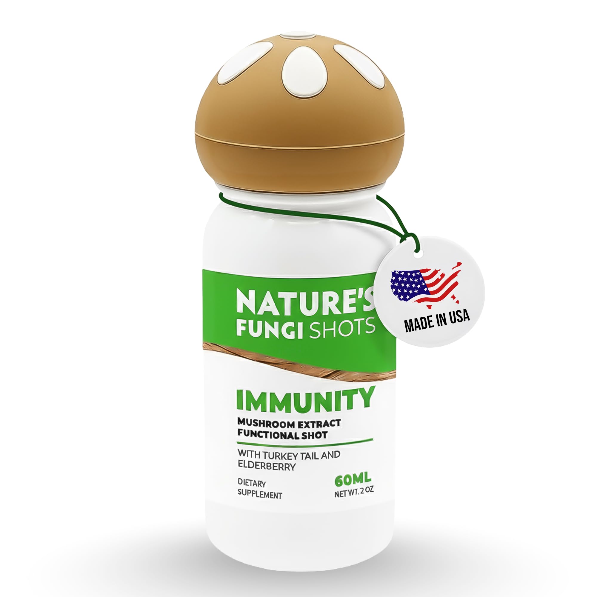 FRUIT-FORWARD FLAVOR WITH GINGER: Balanced flavor from real fruit puree paired with a gentle warming note of ginger, crafted to avoid bitter or medicinal aftertastes and keep daily support enjoyable. CONVENIENT PORTABLE SIZE: Compact 60ml (2oz) bottle slips easily into your pocket, bag, or desk, making it simple to keep immune support accessible without the hassle of powders or bulky bottles. CLEAN, PLANT-BASED INGREDIENTS: Vegan, non-GMO, and gluten-free with no artificial flavors, colors or preservatives, offering a natural approach to wellness unlike other shots with fillers or additives. NUTRIENT-RICH BOTANICAL BLEND: Includes turmeric, bacopa monnieri, and panax ginseng, traditionally used to help the body adapt to stress and support vitality, creating a well-rounded wellness shot. IMMUNE-FOCUSED FORMULA: Turkey Tail mushroom extract, elderberry, echinacea, and ginger combine with Vitamin C, D3, Zinc, and Magnesium to help support daily resilience and overall wellness balance.