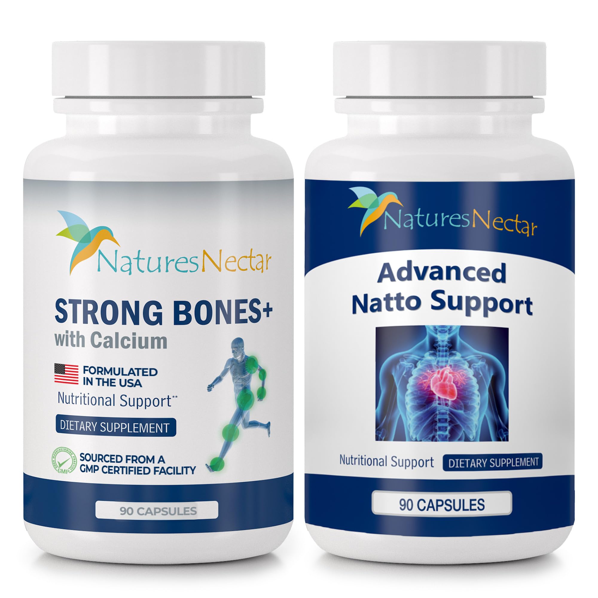 Made in the USA with GMP Quality Satisfaction Guaranteed: Both supplements are made in GMP-certified facilities in the USA, ensuring the highest standards of quality, safety, and potency. Nature's Nectar Organic Nattokinase and Bone Joint Supplement are free from unnecessary additives and preservatives, providing pure, high-quality supplements. With a satisfaction guarantee, you can return the products hassle-free if you're not completely satisfied. Max Absorption Bone Builder Formula: The Bone Joint Supplement is designed for maximum absorption to ensure your body gets the full benefit of the potent calcium and vitamin D blend. With the inclusion of vitamin K2, magnesium, and other minerals, this formula optimizes calcium utilization and supports overall bone health, ensuring that you achieve maximum bone strength and growth. Bone Health Strength with Clinically Studied Ingredients: The Bone Joint Supplement is specifically formulated with a powerful blend of calcium, vitamin D, magnesium, and strontium to support bone formation, repair, and maintenance. These ingredients work together to increase bone strength, improve bone mineral density, and support long-term skeletal health, making it ideal for those looking to build and maintain strong, healthy bones. Double Strength Nattokinase for Cardiovascular Health: Nature's Nectar Organic Nattokinase delivers 4000 FU of pure nattokinase per capsule, derived from fermented organic soybeans for maximum potency. This double-strength supplement promotes healthy blood flow, supporting cardiovascular health by acting as a natural blood thinner, which helps to reduce the risk of clotting and improves overall blood circulation. Comprehensive Cardiovascular Bone Health Support: This bundle combines two essential supplements that promote both heart and bone health. Nature's Nectar Organic Nattokinase supports healthy blood circulation, acting as a natural blood thinner, while the Bone Joint Supplement enhances bone strength and growth with vital nutrients like calcium, vitamin D, magnesium, and strontium. Together, they provide comprehensive support for cardiovascular and skeletal well-being.