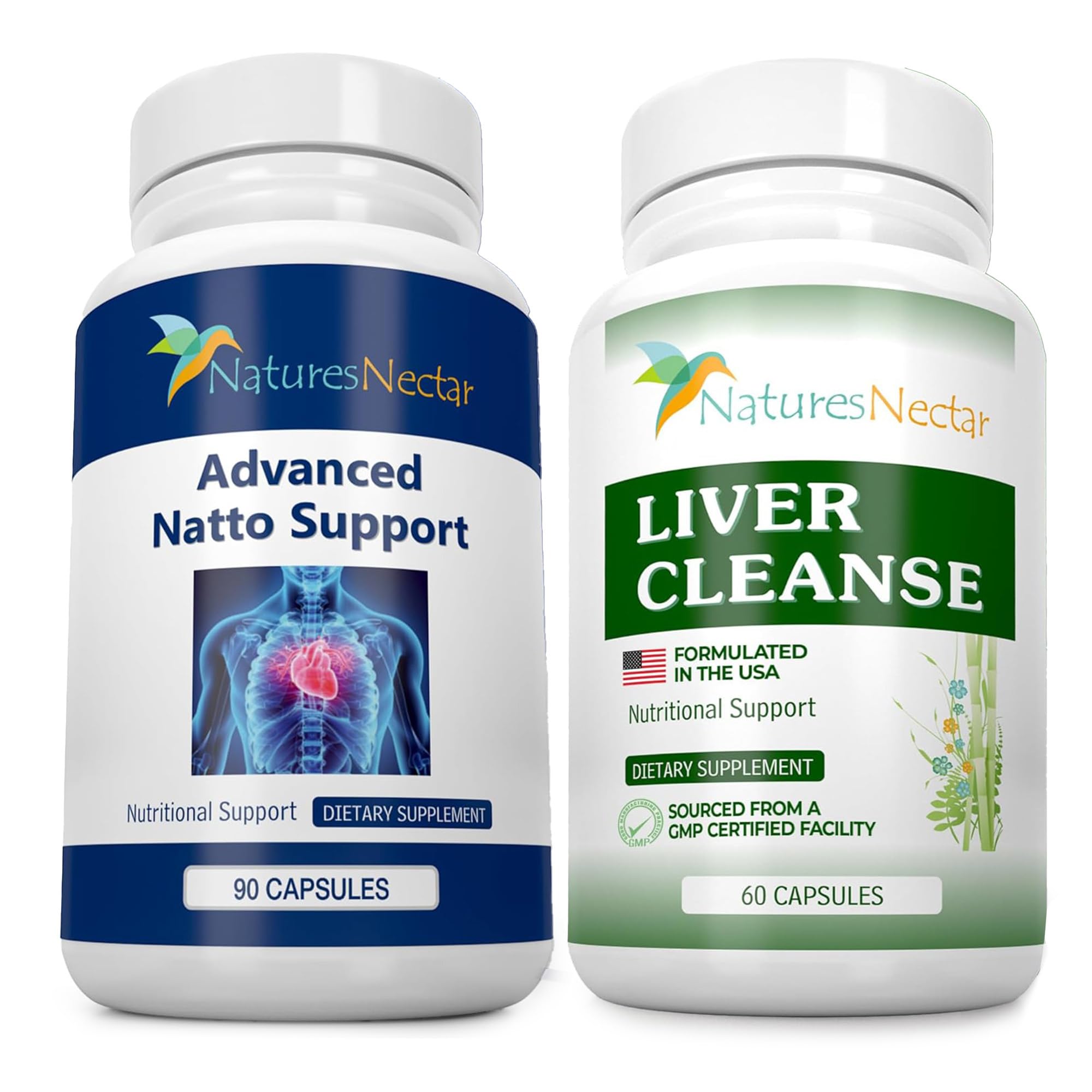 Powerful Liver Detox Repair: This milk thistle liver detox supplement supports natural liver cleansing and regeneration from environmental toxins, alcohol, medications, and poor diet for improved overall liver health Potent Organic Formula: Contains milk thistle and a custom blend of organic ingredients designed to flush out toxins and replenish essential nutrients for optimal and vital liver support Safe Pure Capsules: Free from GMOs, fillers, soy, gluten, dairy, shellfish, corn, wheat, and peanuts. Gentle, non-toxic liver cleanse detox repair fatty liver support with no unnecessary additives Supports Gallbladder Fatty Liver Health: Our oxyenergy milk thistle liver detox promotes active liver and gallbladder wellness, aiding in the reduction of fatty liver symptoms and supporting digestion Made in the USA with GMP Compliance: Manufactured in GMP-certified facilities. Satisfaction guaranteed with easy returns through 's no-hassle policy. Double Strength 200mg Nattokinase Supplement: Each capsule delivers 4000 FU of pure nattokinase enzyme derived from fermented organic soybeans for maximum potency Supports Cardiovascular Blood Circulation Health: These healthy heart support circulation supplements helps promote healthy blood flow and acts as a natural blood thinner to support overall heart health Pure, High-Quality Formula: Our blood thinner supplement is made without preservatives or artificial ingredients. GMO-free and gluten-free for clean supplementation Made in the USA in GMP Certified Facilities: Manufactured under strict quality controls to ensure consistency, potency, and safety Satisfaction Guaranteed: If you're not fully satisfied, return the product hassle-free through for a full refund. We stand behind our qualityMade in the USA with GMP Quality Satisfaction Guaranteed: Manufactured in GMP-certified facilities in the USA, both supplements undergo strict quality control measures to ensure consistency, potency, and safety. We stand behind the quality of our products, offering a satisfaction guarantee with easy, hassle-free returns through if you're not completely satisfied. Non-GMO, Gluten-Free, Safe for Daily Use: Both supplements are made with clean, natural ingredients, free from GMOs, gluten, soy, and other unnecessary fillers. The Nattokinase formula is also free from preservatives and artificial ingredients, ensuring you're getting a pure, high-quality supplement. The Milk Thistle Liver Detox is safe for daily use and gentle on the digestive system, offering non-toxic support for liver health. Potent Liver Detox Repair with Organic Ingredients: The Liver Cleanse Detox Repair formula contains milk thistle and a custom blend of organic ingredients such as Turmeric, Dandelion Root, Artichoke Leaf, and Beet Root. This unique blend promotes liver detoxification, repairs damage caused by toxins and poor diet, and helps support healthy gallbladder and fatty liver health, making it ideal for long-term liver care. Double Strength Nattokinase for Healthy Blood Circulation: Nature's Nectar Organic Nattokinase delivers 4000 FU of pure nattokinase enzyme per capsule, sourced from fermented organic soybeans for maximum potency. This powerful blood thinner helps promote healthy blood flow and supports cardiovascular health by reducing the risk of clotting, thus improving overall circulation and heart function. Comprehensive Support for Heart Liver Health: This bundle combines two potent supplements for optimal cardiovascular and liver health. Nature's Nectar Organic Nattokinase helps support healthy blood flow and heart health, while the Milk Thistle Liver Cleanse Detox Repair supports liver detoxification, regeneration, and overall liver function, ensuring comprehensive well-being.