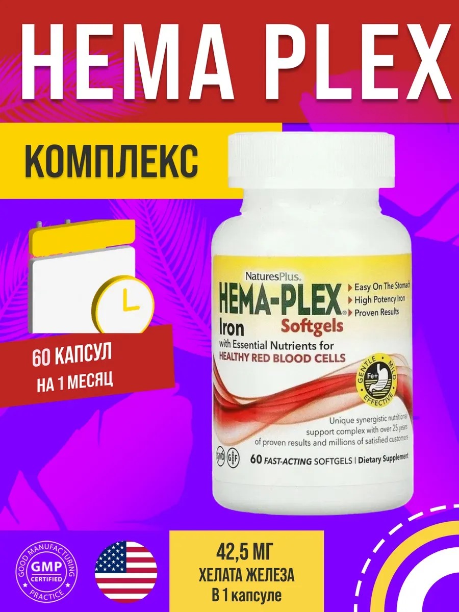 Nature's Plus Железо хема плекс 60 softgel капсул Hema-Plex Iron