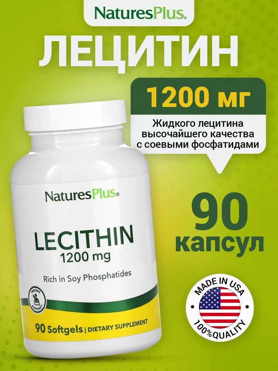 NaturesPlus Lecithin 1200 mg, 90 Softgels is a natural complex designed to support liver, heart, and brain health. It performs important functions such as skin rejuvenation, nerve protection from stress, memory enhancement, and reproductive support. This product also has antioxidant properties, which help cleanse the body of harmful substances and improve digestive function. Lecithin is a natural supplement available in softgel form designed to improve health and beauty. It contains vitamins and minerals that provide the body with everything it needs for well-being. This product is especially beneficial for women and girls, as it helps improve the condition of nails and skin, prevents hair loss, and supports female reproductive function. Lecithin helps maintain the health of organs and body systems. It helps cleanse the liver and pancreas, improves the function of blood vessels, kidneys, and the heart. Lecithin affects potency and sexual performance in men, helping to increase libido and prolong sexual intercourse. It actively promotes cell and tissue regeneration, strengthens the immune system, and improves thyroid function. This product can also be useful for adults looking to lose weight, as it helps control appetite and promote weight loss. Lecithin is a natural supplement recommended for inclusion in everyone's diet. Its use improves skin condition, reduces hair loss, and strengthens nails. It helps cleanse the body of harmful substances and toxins, which is especially valuable for those looking to lose weight and improve overall health. Lecithin comes in a convenient jar, making its use even more convenient and practical. Lecithin not only detoxifies but also detoxifies the digestive system—another important function of lecithin. It helps fight cholesterol and promotes normal digestion, allowing the body to absorb nutrients more effectively. Lecithin is an essential component of a healthy lifestyle and beauty, improving the condition of facial skin and overall growth. This product also helps maintain overall healthy body function, boosts mood, improves sleep, and provides energy and vitality throughout the day. Try lecithin for your liver, heart, and brain and experience all its benefits for yourself! DIRECTIONS: Take one capsule daily. WARNING: Keep out of reach of children. Consult a physician before using dietary supplements if you are undergoing treatment for a medical condition, or if you are pregnant or breastfeeding. Store tightly closed in a dry place at room temperature. Not a medicine.