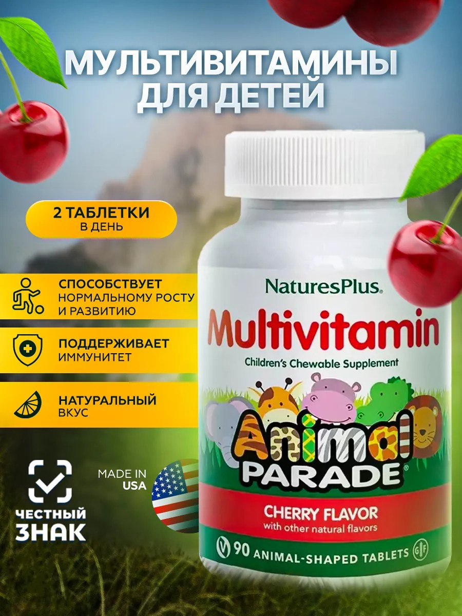 Animal Parade Multivitamin by NaturesPlus is a comprehensive multivitamin supplement in delicious chewable tablets with natural cherry flavor.