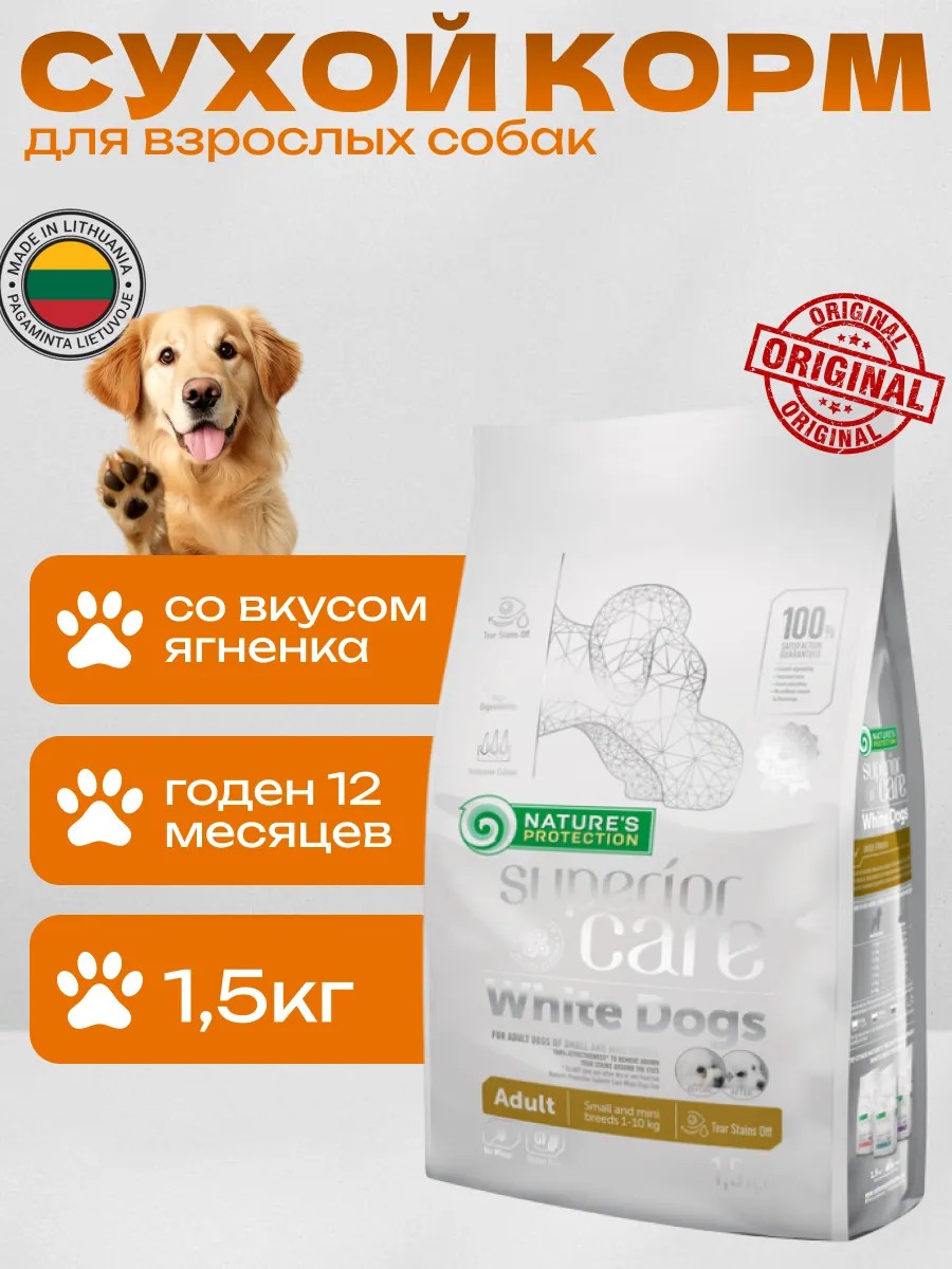 Nature's protection Nature's Protection для собак белых пород (Ягненок), 1,5 кг
