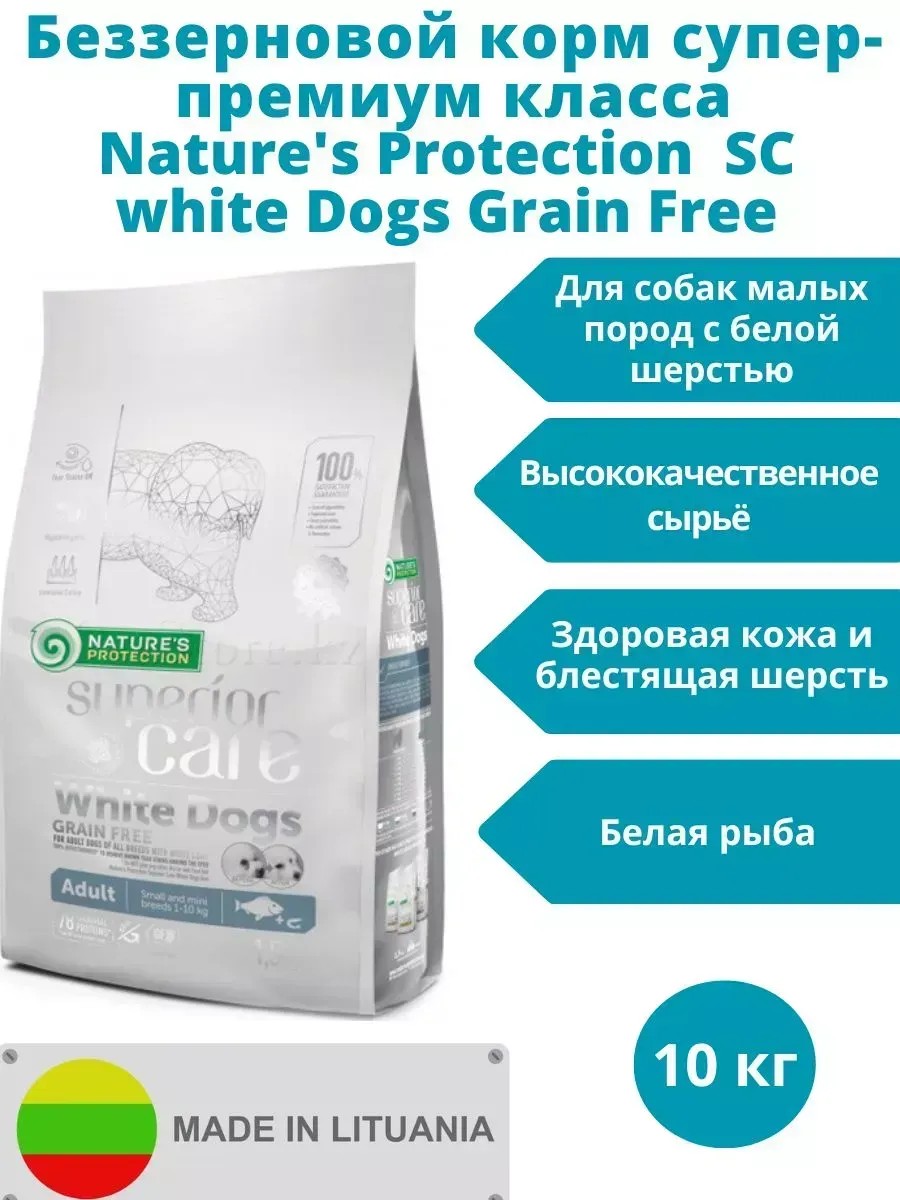 NATURE'S PROTECTION SUPERIOR CARE WHITE DOGS GRAIN FREE WHITE FISH SMALL AND MINI BREEDS. ПОЛНОЦЕННЫЙ БЕЗЗЕРНОВОЙ КОРМ ДЛЯ ВЗРОСЛЫХ СОБАК МАЛЫХ И МИНИАТЮРНЫХ ПОРОД