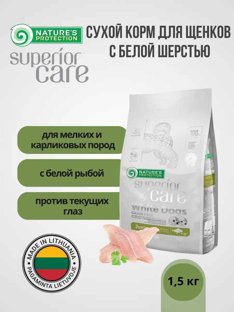 Nature's Protection White Dogs Grain Free Junior Small Breeds, рыба, 1,5 кг