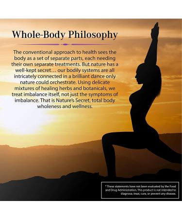 We understand, for example, that sluggish digestion can lead to low energy levels and shouldn't always be supported with caffeinated energy tablets. Our approach focuses on the origins of imbalance, not the signs of imbalance. This is Nature's Secret, total body wholeness and wellness.