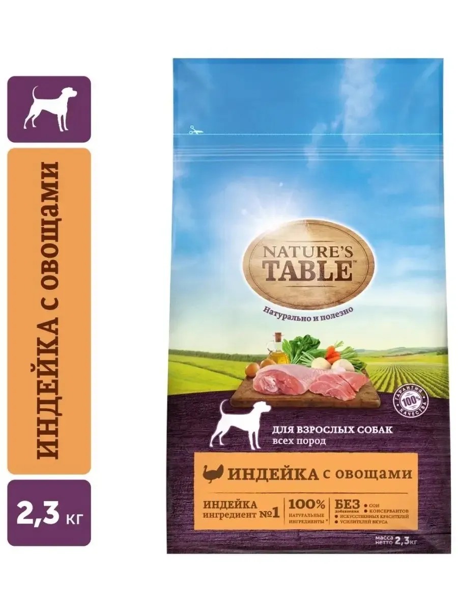 NATURE'S TABLE Корм для взрослых собак всех пород, индейка и овощи 2,3кг