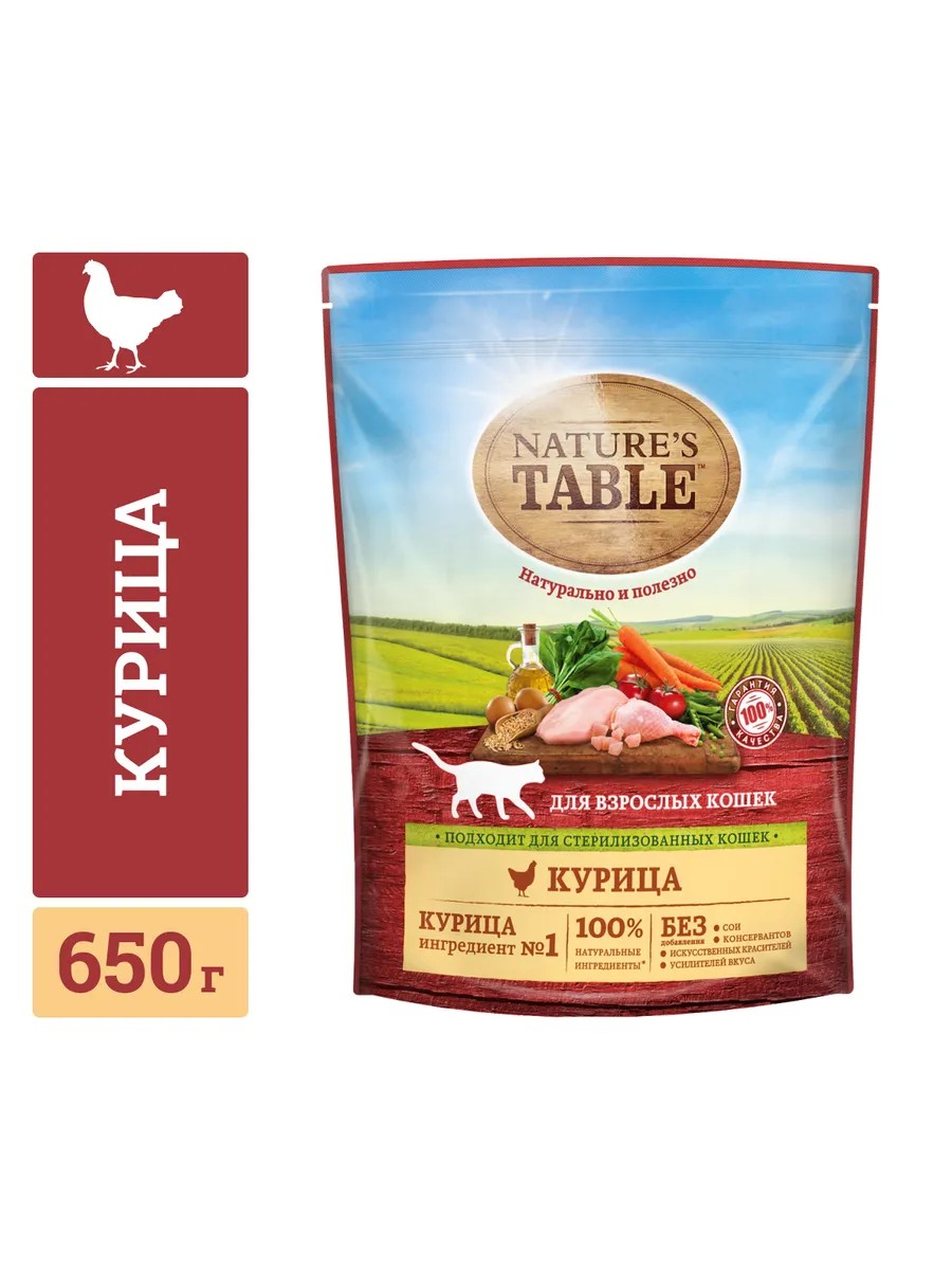 NATURE'S TABLE Корм сухой для взрослых кошек NATURE'S TABLE Курица, 650г