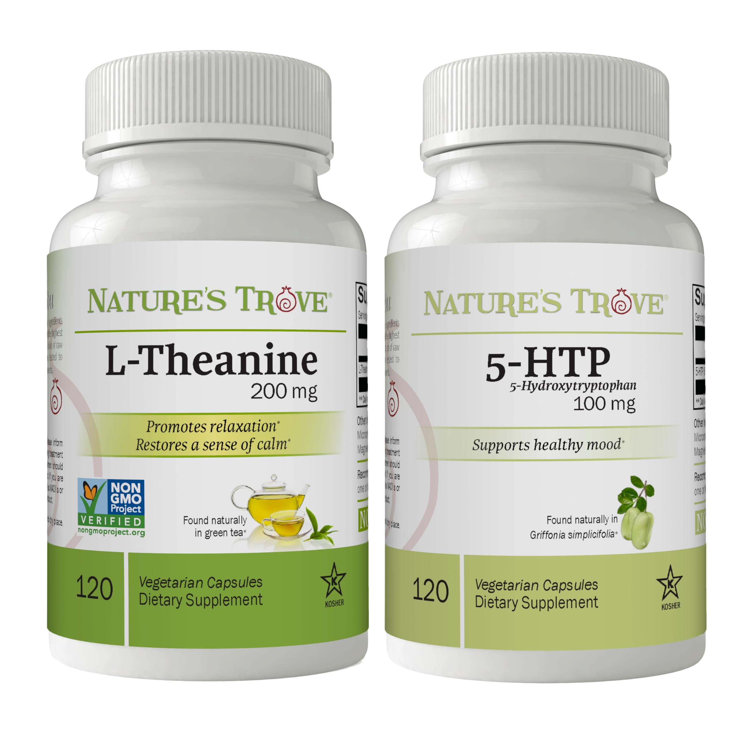 Nature's Trove L-Theanine 200mg 120 Vegetarian Capsules & 5-HTP 100mg 120 Vegetarian Capsules - Calm & Healthy Mood Stack