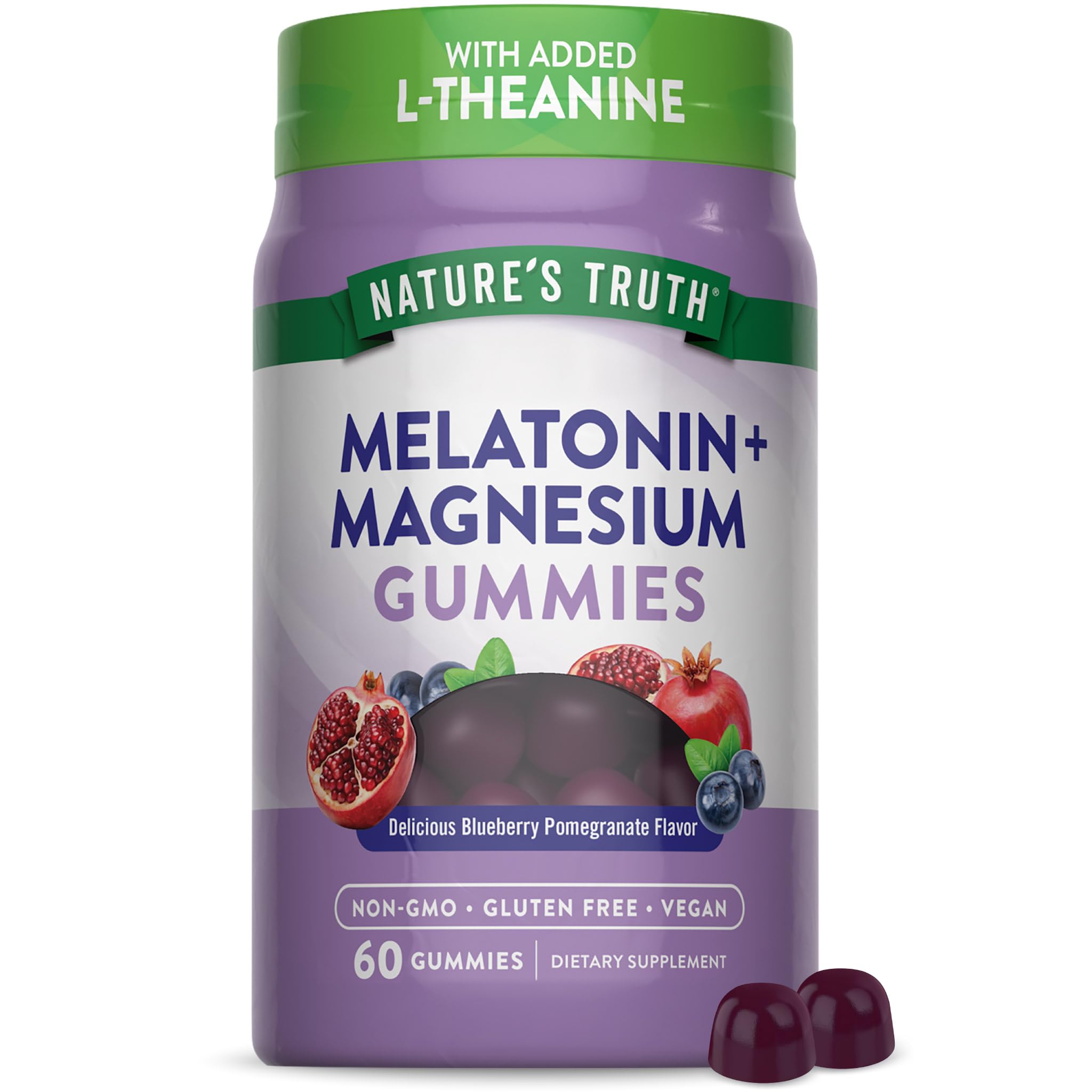 Nature's Truth Melatonin with Magnesium Gummies | 60 Count | Plus L-Theanine | Blueberry Pomegranate Flavor | Vegan Non-GMO & Gluten Free Supplement