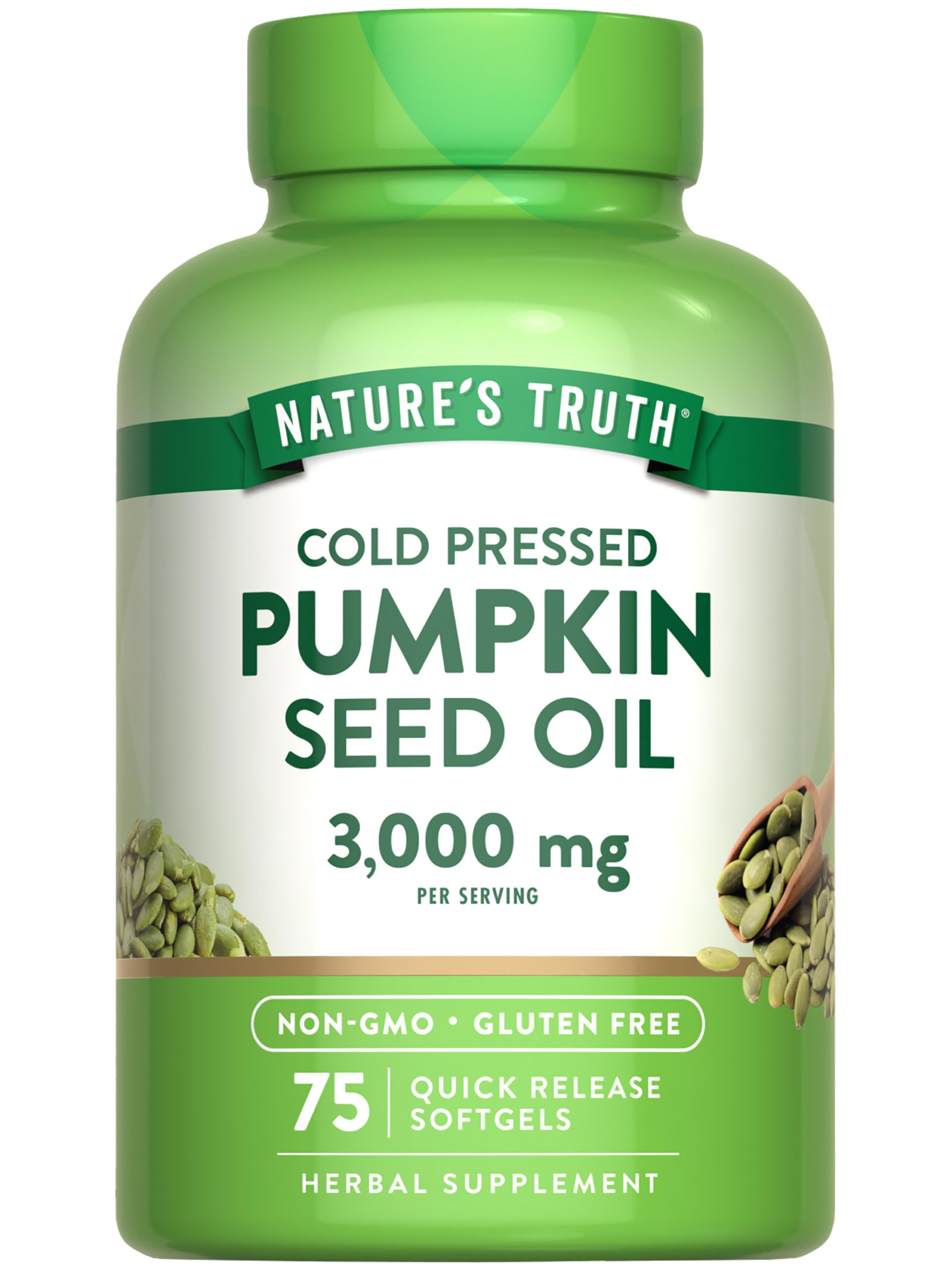 NATURALLY FREE OF: Gluten, Wheat, Yeast, Milk, Lactose, Soy, Artificial Color, Sweetener Flavor, Preservatives, and Non-GMO. EXPERTS YOU CAN TRUST: Backed by three generations of Vitamin Innovators for unrivaled quality. HONEST TRANSPARENT: Nature's Truth is committed to delivering the best quality wellness products. COLD PRESSED: More of the natural nutrients are preserved and delivered in quick release softgels. PUMPKIN SEED OIL: Each serving delivers 3,000 mg of Pumpkin Seed Oil which contains Omega-6 9.