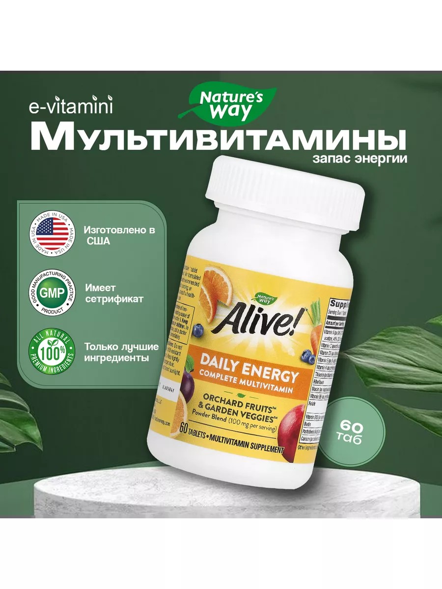 Сбалансированный состав витаминов и микроэлементов Nature's Way, Alive! для взрослых. Получите максимум пользы от мультивитаминов!