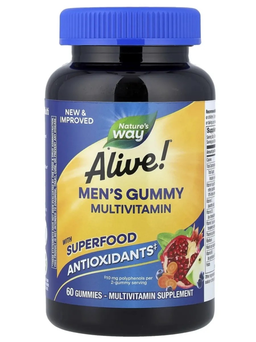 Nature's Way, Alive! Men's Gummy Vitamins, Great Fruit Flavors, 60 Gummies