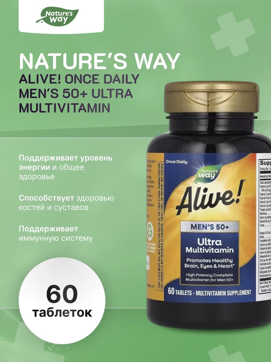 Nature's way Alive! Once Daily Men's 50+ Ultra Multivitamin, 60 таблеток